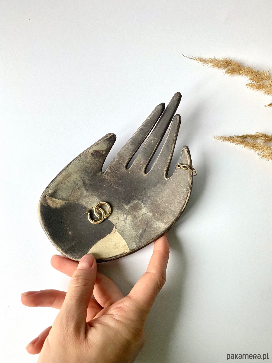 Ceramic plate in hand's shape. Perfect for keeping your jewels, tea candle or your favourite treasures.