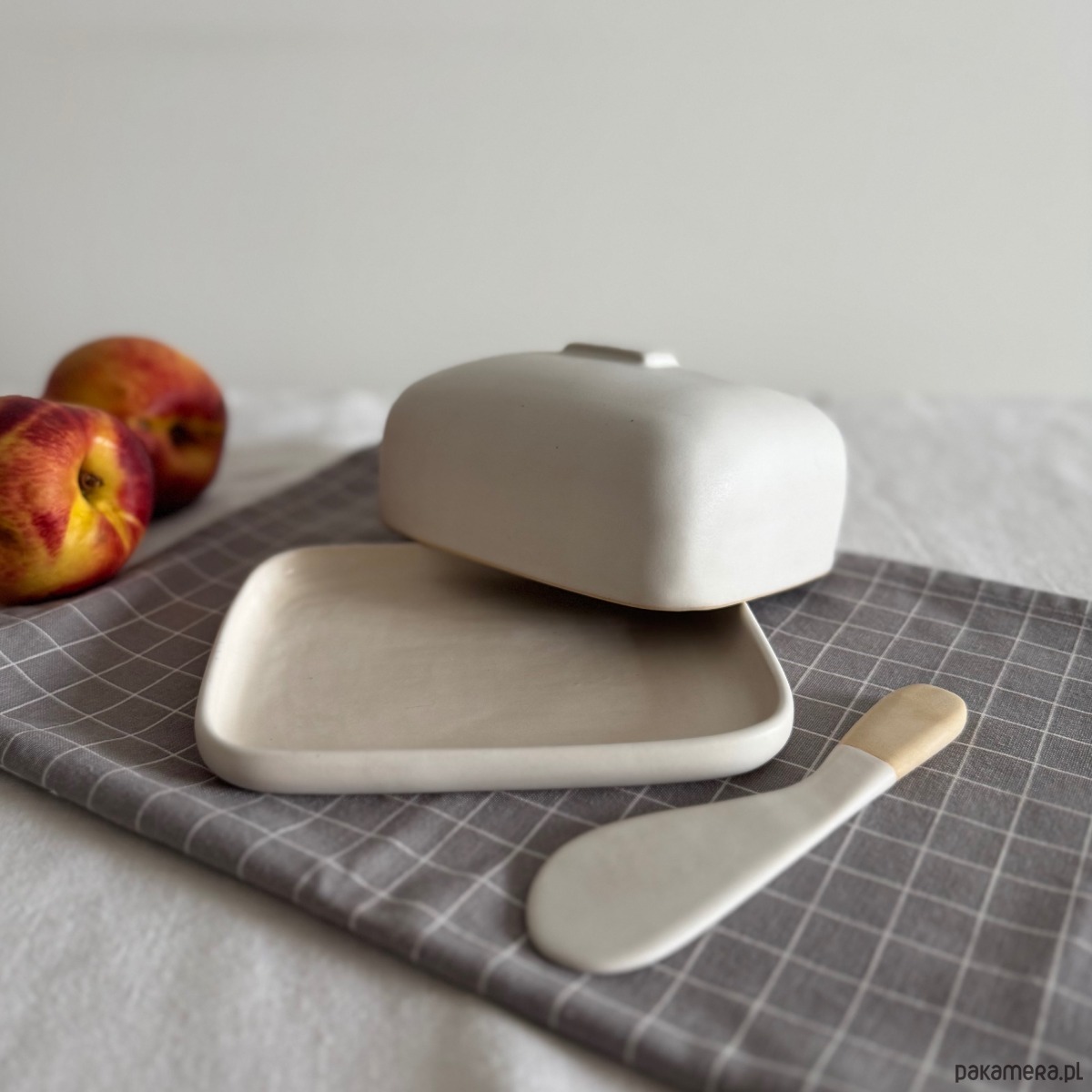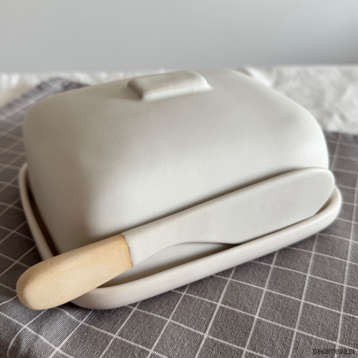 Ceramiczna maselniczka z nożykiem / Elegancki akcent na Twoim stole