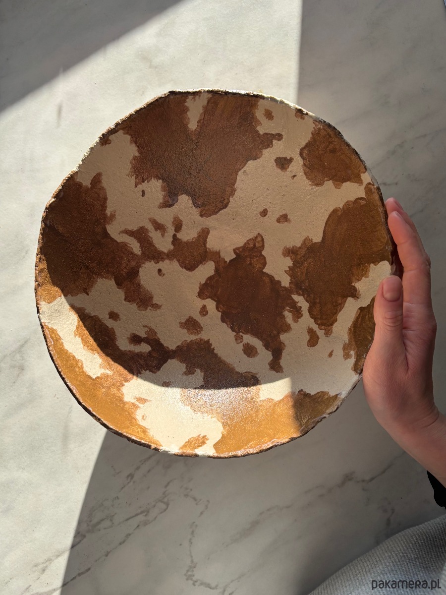 Ceramiczna unikatowa ręcznie formowana misa o rustykalnym charakterze, idealna na owoce, sałatę, przekąski, lub jako element dekoracyjny przestrzeni. Organiczny, inspirowany naturą kształt naczynia wprowadza do przestrzeni harmonię, a jednocześnie jest wyjątkowym elementem czyniącym wnętrze nowoczesnym i designerskim.