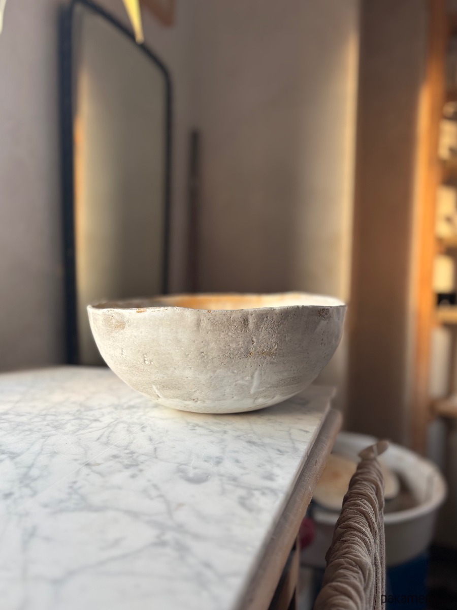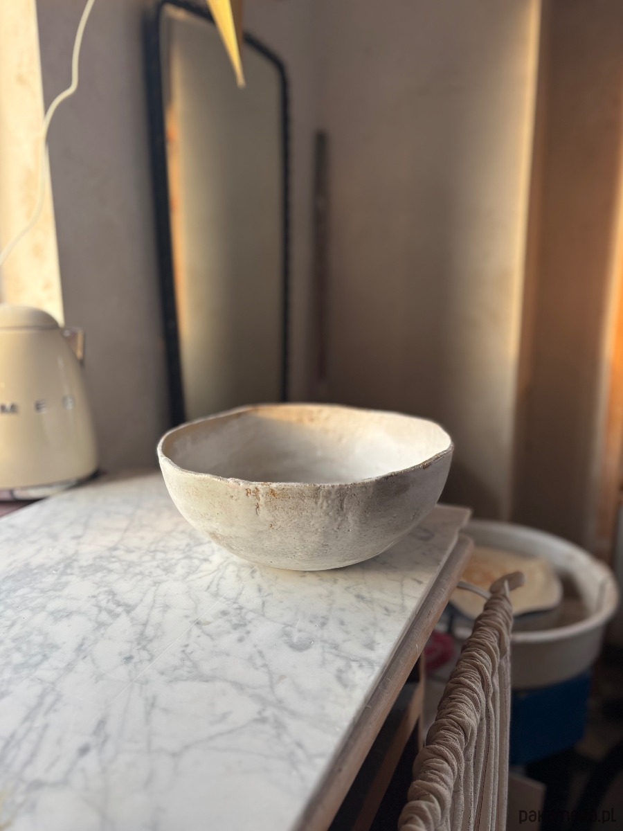 Ceramiczna unikatowa ręcznie formowana misa o rustykalnym charakterze, idealna na owoce, sałatę, przekąski, lub jako element dekoracyjny przestrzeni. Organiczny, inspirowany naturą kształt naczynia wprowadza do przestrzeni harmonię, a jednocześnie jest wyjątkowym elementem czyniącym wnętrze nowoczesnym i designerskim.