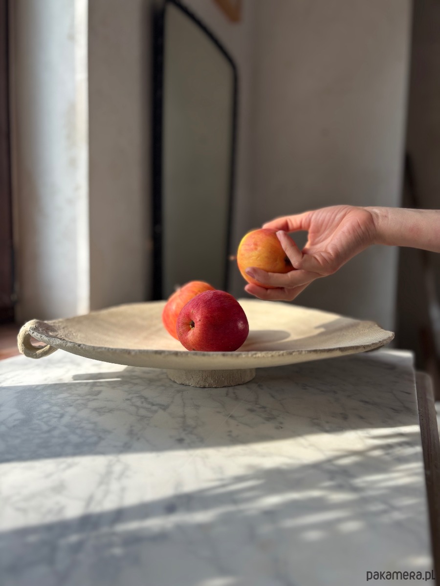 Ceramiczna Misa XXL na Cokole na Owoce Przekąski Raw Beige