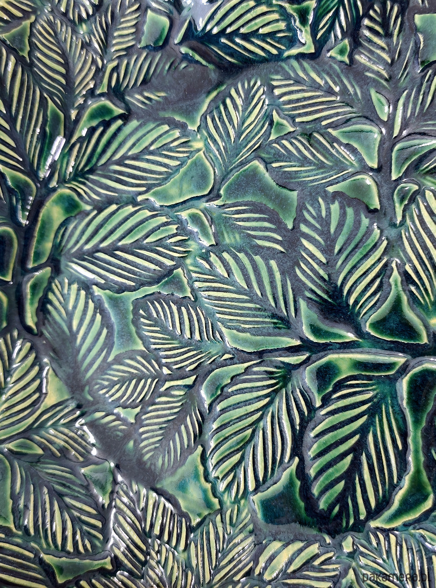 Ceramiczna misa z motywem liści w kolorze butelkowej zieleni