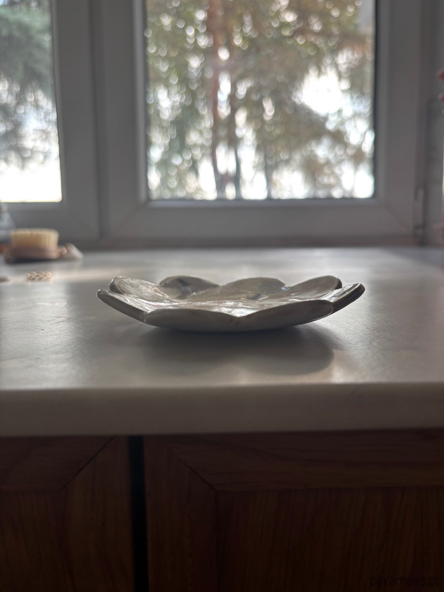 Ręcznie formowana ceramiczna miseczka w kształcie kwiatu, idealna na biżuterię lub inne drobiazgi, tapasy, przekąski, palo santo lub po prostu ukochane drobiazgi.