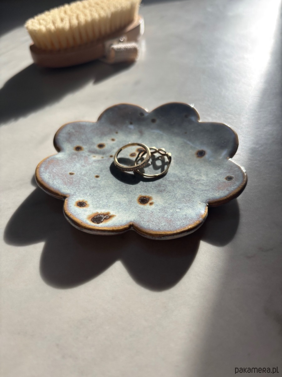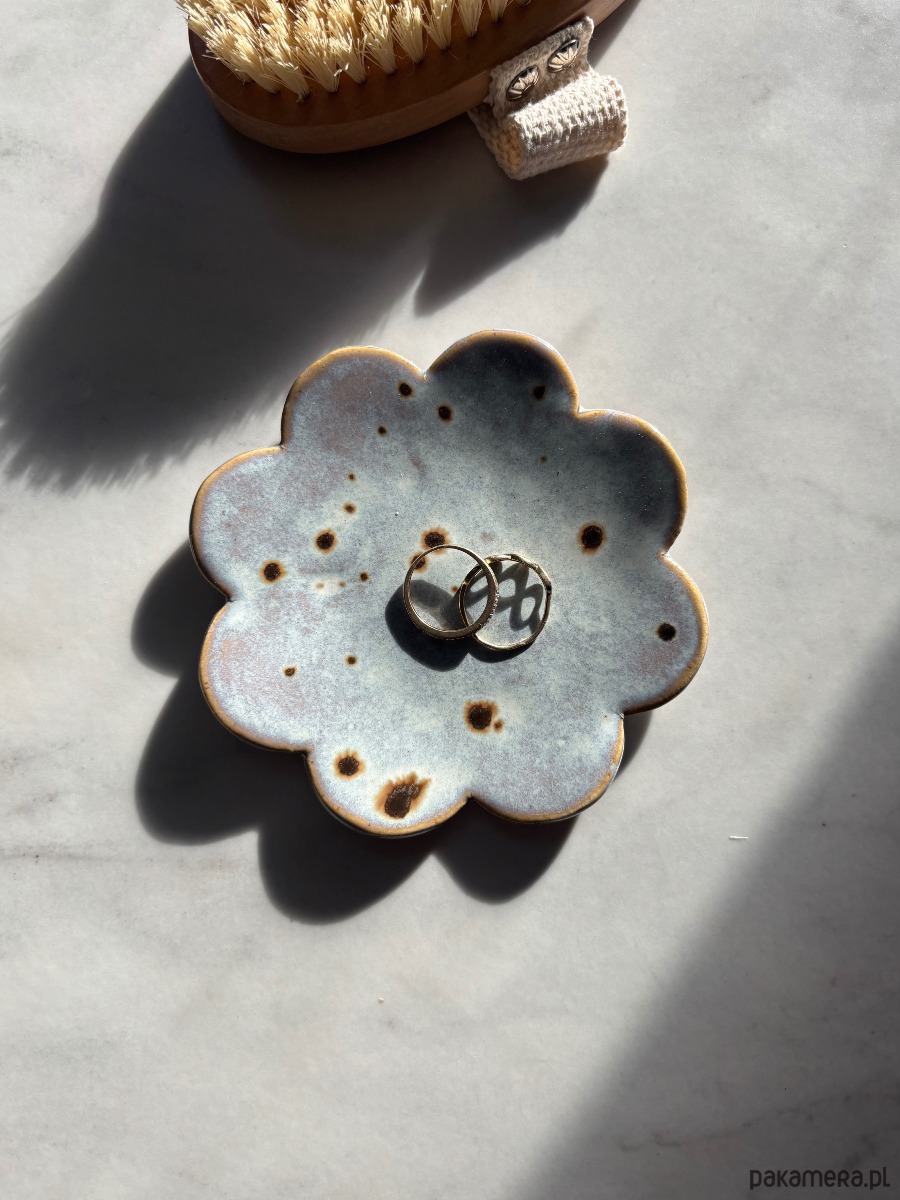 Ręcznie formowana ceramiczna miseczka w kształcie kwiatu, idealna na biżuterię lub inne drobiazgi, tapasy, przekąski, palo santo lub po prostu ukochane drobiazgi.