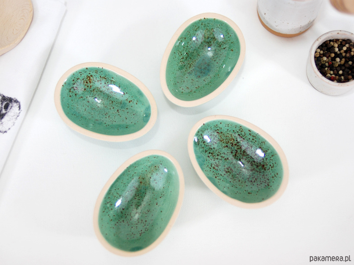 Ręcznie formowana i malowana ceramiczne miseczka, którą możesz wykorzystać do serwowania jajek, sosów, przypraw czy drobnych przekąsek.