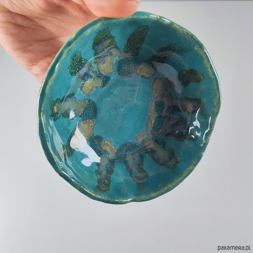 Produkt jest lepiony i szkliwiony ręcznie, mogą się zdarzyć miejsca niedoskonałe, ale dzięki nim przedmiot jest niepowtarzalny.