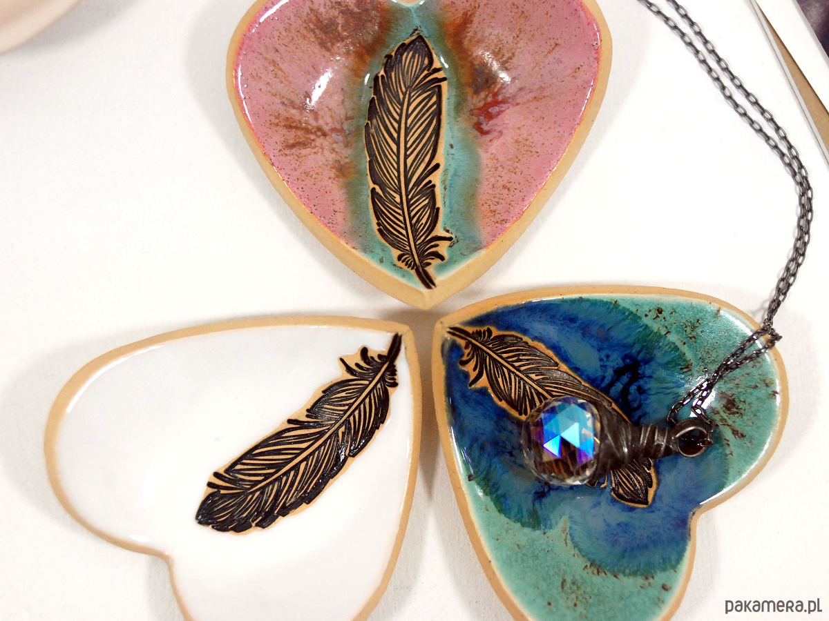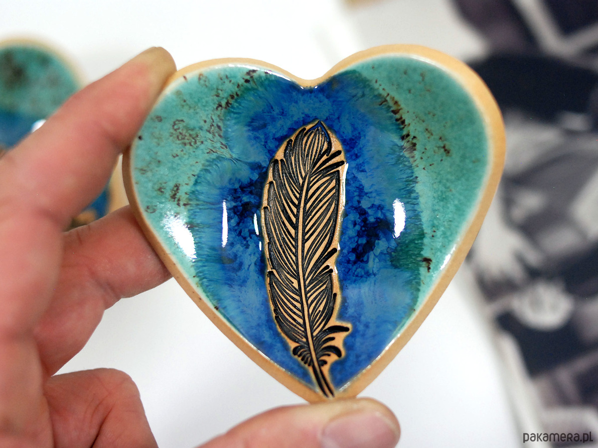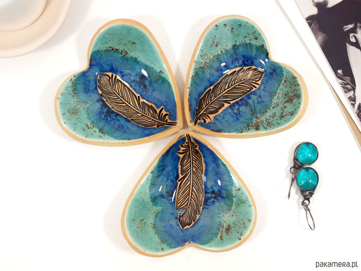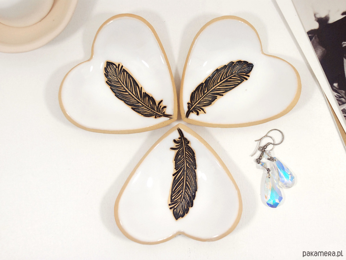 Ceramiczna miseczka serce z piórkiem - talerzyk na biżuterię