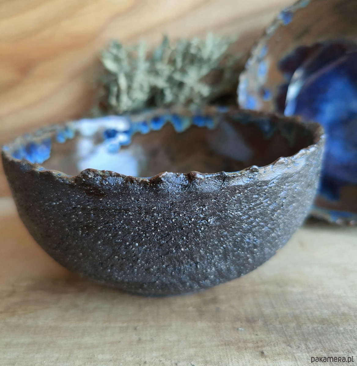 miska ceramiczna formowanych ręcznie z ciemnobrązowej gliny .