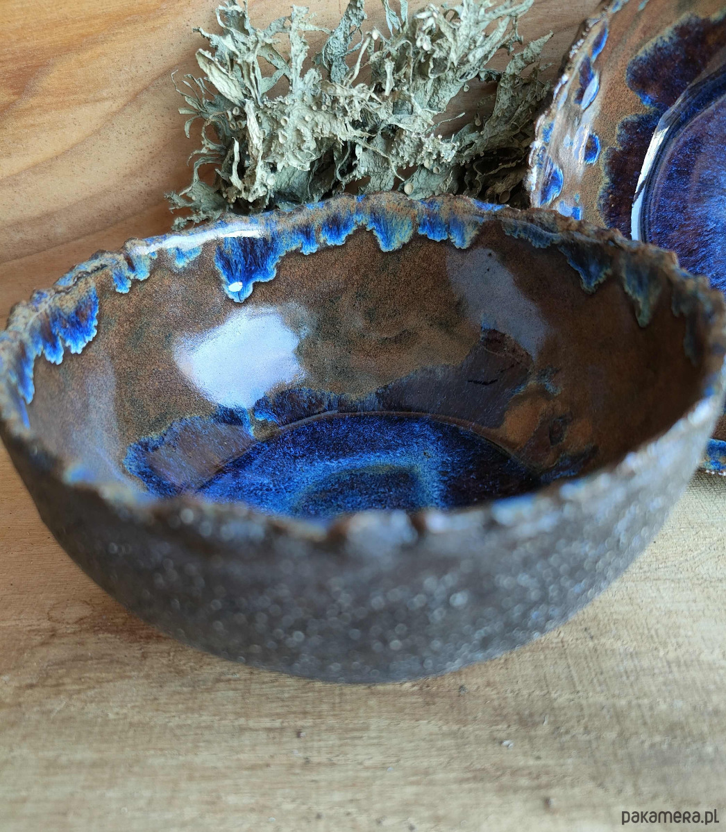 Wewnętrzna część szkliwiona mieszanką szkliw , które dały niepowtarzalny efekt .