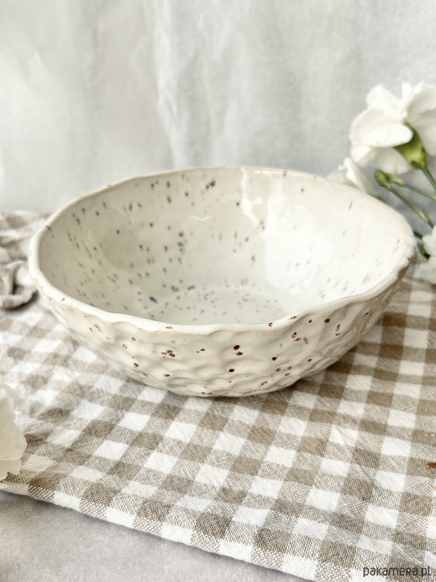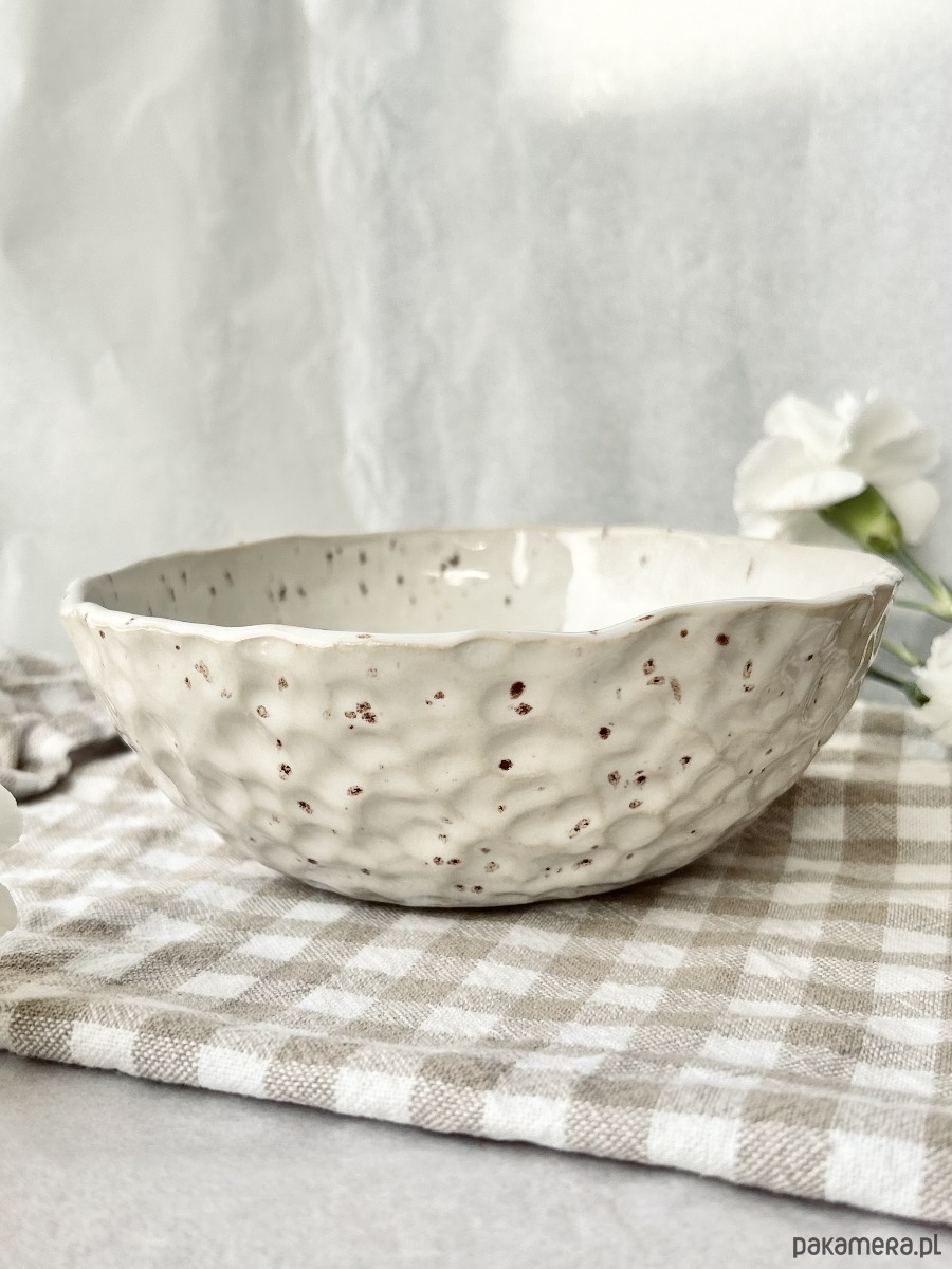 Ręcznie robiona ceramiczna miska, z unikalną fakturą.