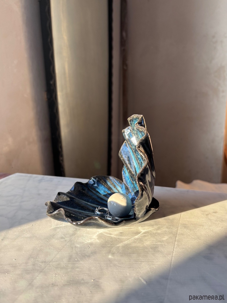 Ceramiczna Muszla Muszelka Skarbiec z Perłą na Biżuterię Midnight Ocean