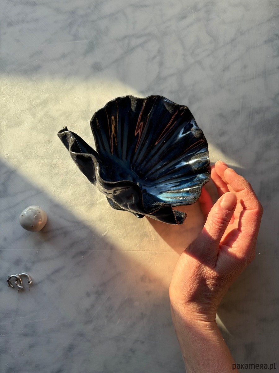 Autorska ceramiczna podstawka w kształcie otwartej muszli. Idealna na biżuterię, palo santo, kryształy lub po prostu ukochane drobiazgi. Muszla jest stworzona przez Moni, założycielkę marki Maison Fragile. Każda jest lepiona i szkliwiona bez użycia form, co sprawia, że każdy egzemplarz jest unikatowy.