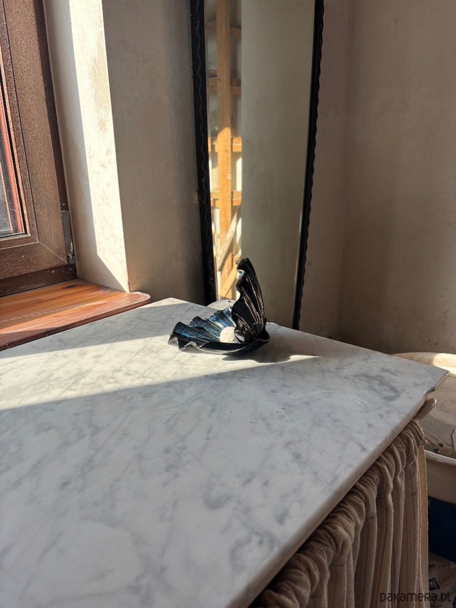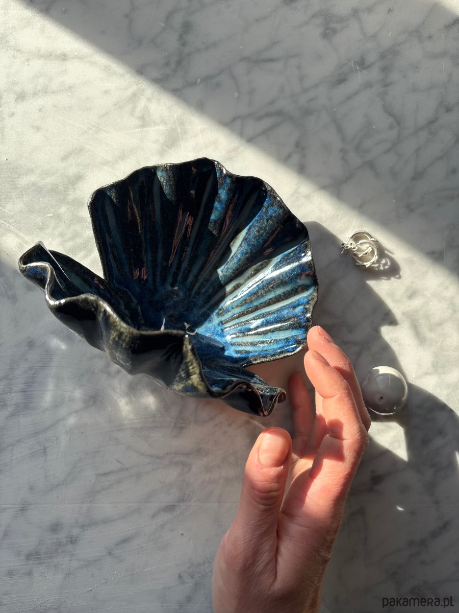 Autorska ceramiczna podstawka w kształcie otwartej muszli. Idealna na biżuterię, palo santo, kryształy lub po prostu ukochane drobiazgi. Muszla jest stworzona przez Moni, założycielkę marki Maison Fragile. Każda jest lepiona i szkliwiona bez użycia form, co sprawia, że każdy egzemplarz jest unikatowy.