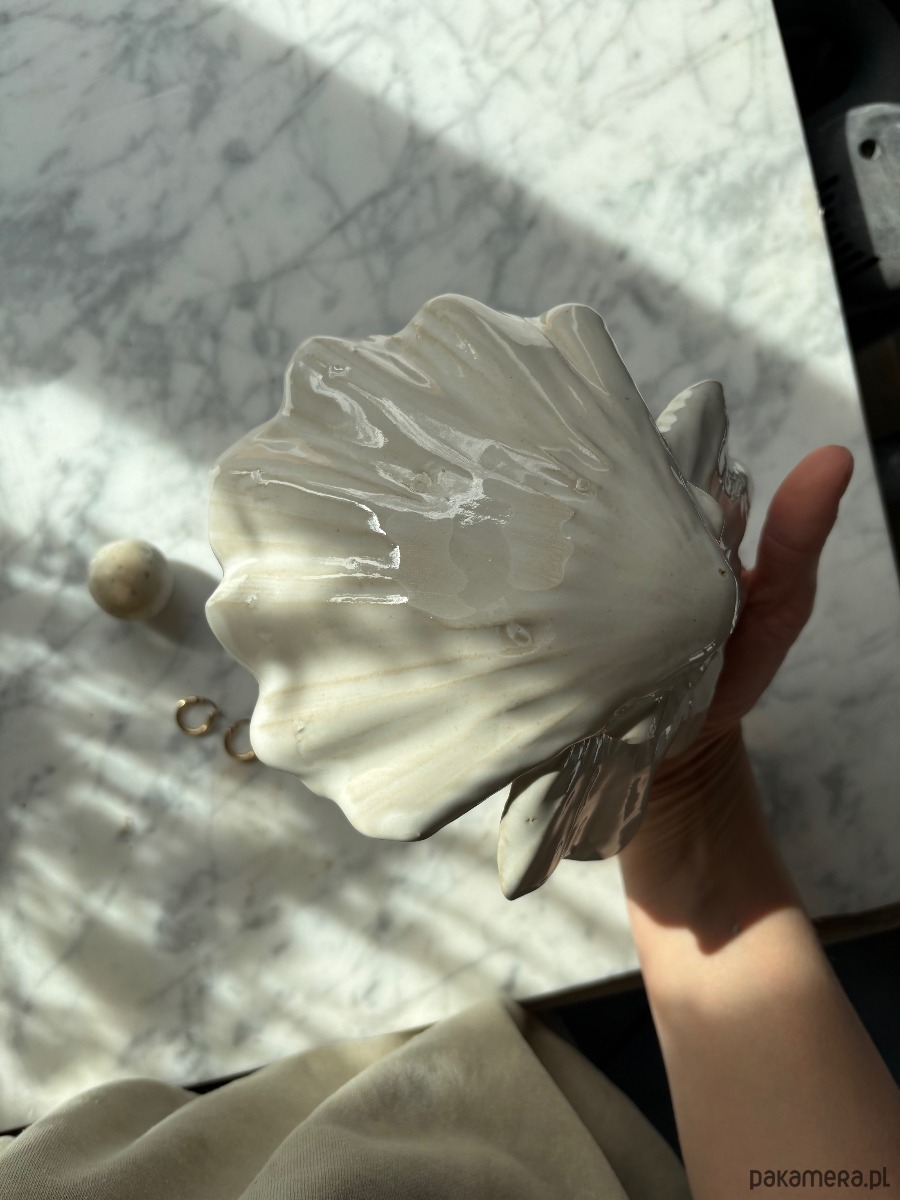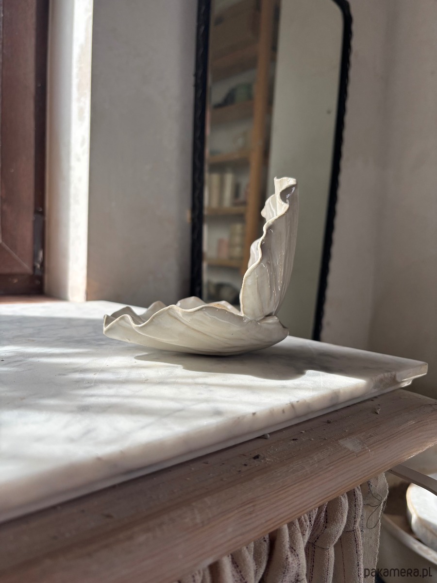 Ceramiczna, unikatowa, ręcznie stworzona podwójna muszla. Bardzo szeroko otwarta.