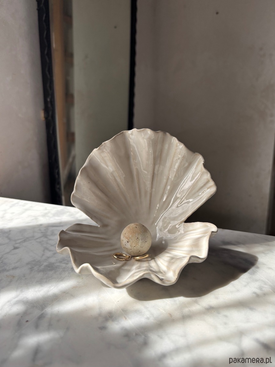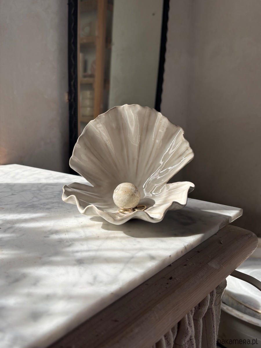 Ceramiczna Muszla Muszelka Skarbiec z Perłą na Biżuterię Perłowa Biała