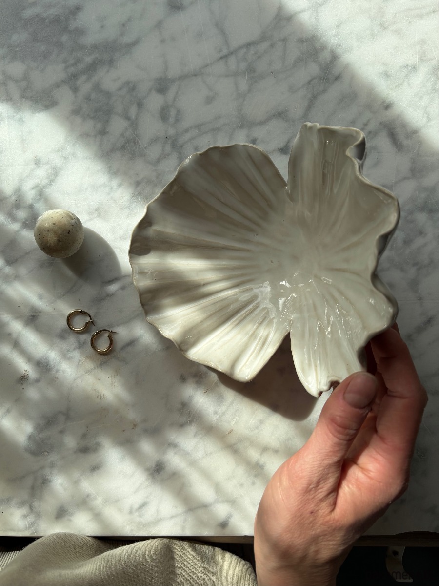 Ceramic plate in oyster shape. Perfect for keeping your jewels, tea candle or your favourite treasures.