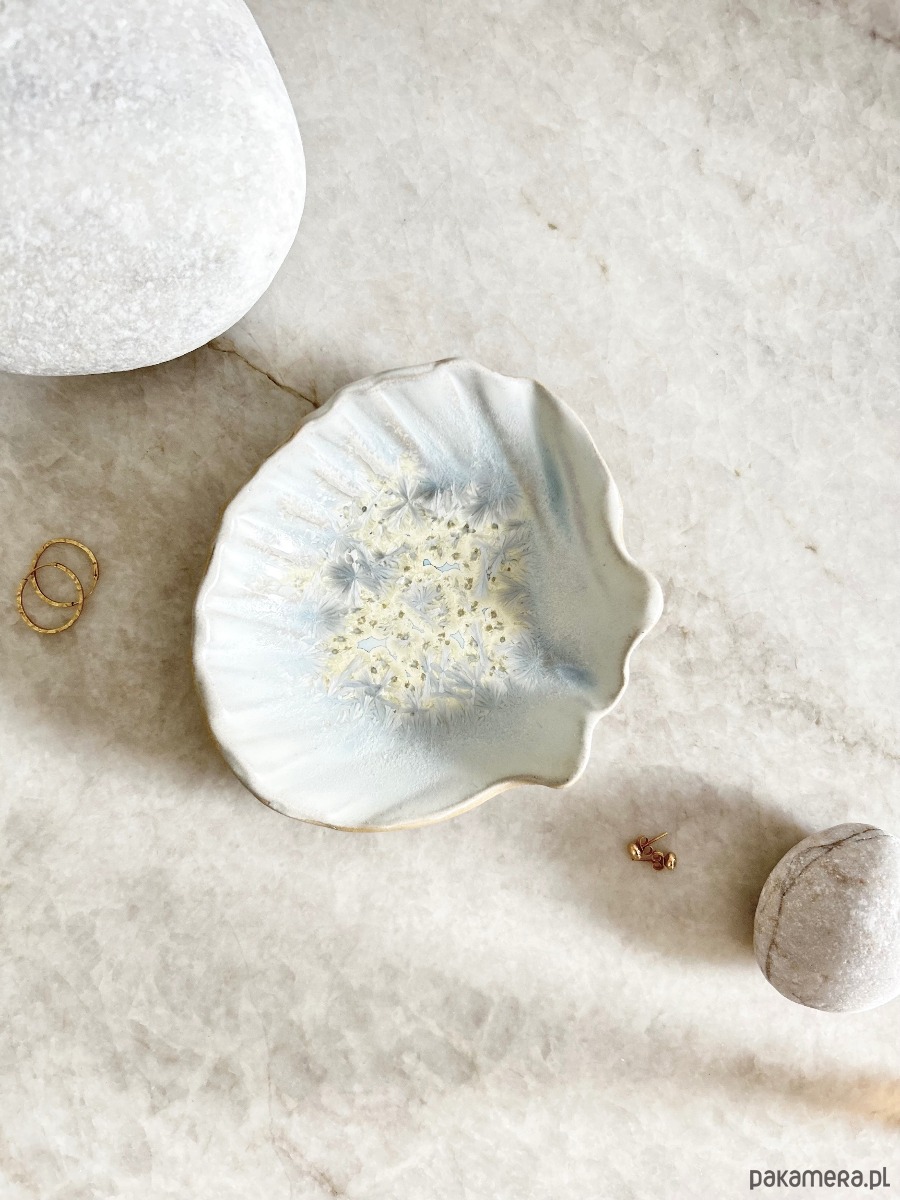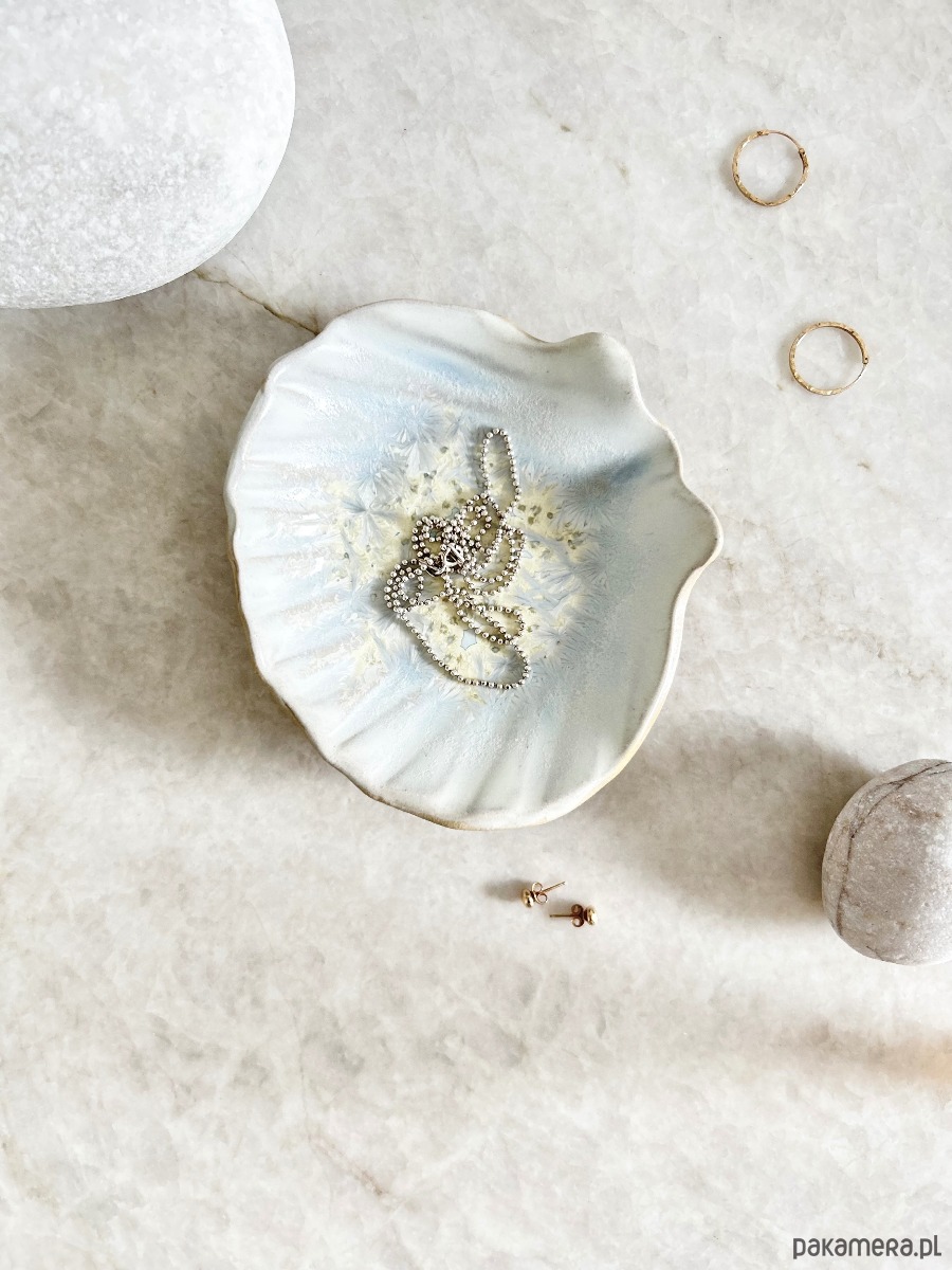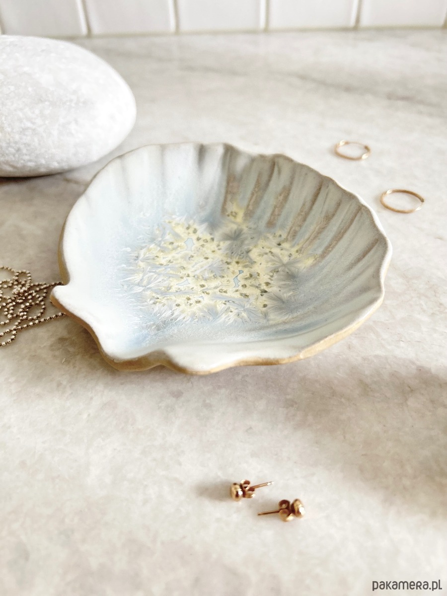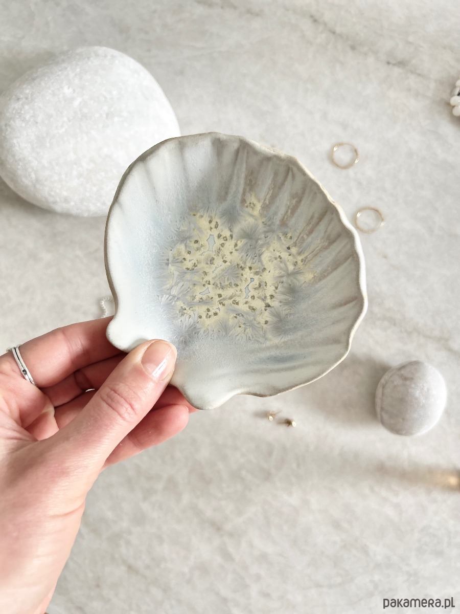 Ceramiczna muszla – talerzyk na biżuterię.