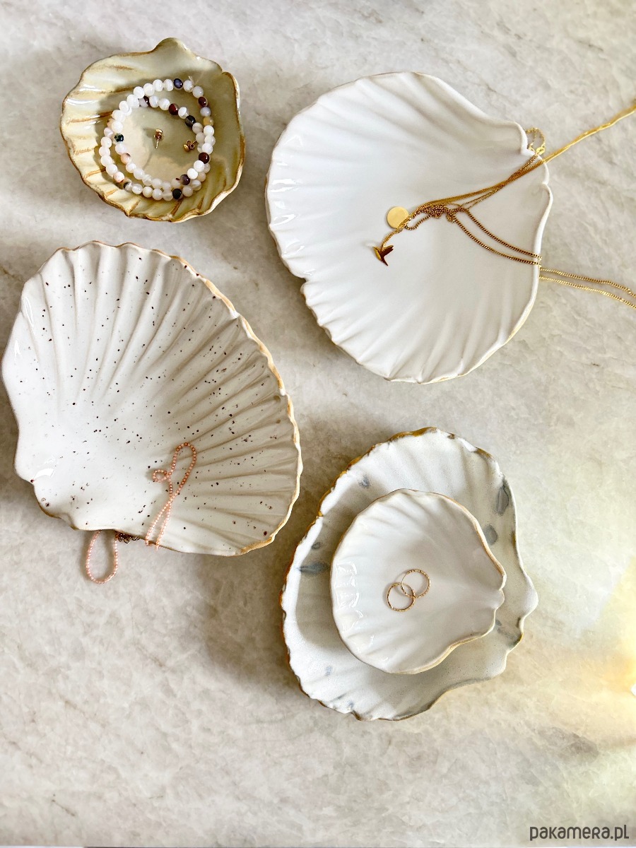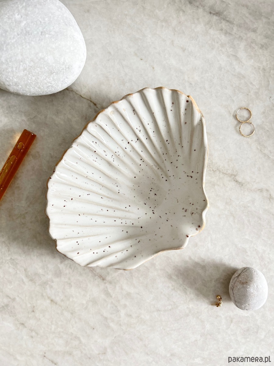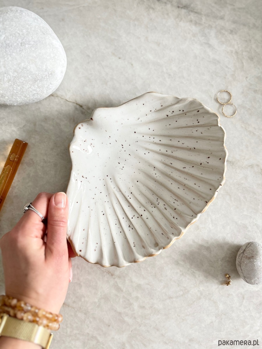 Duża ceramiczna muszla – talerzyk na biżuterię.