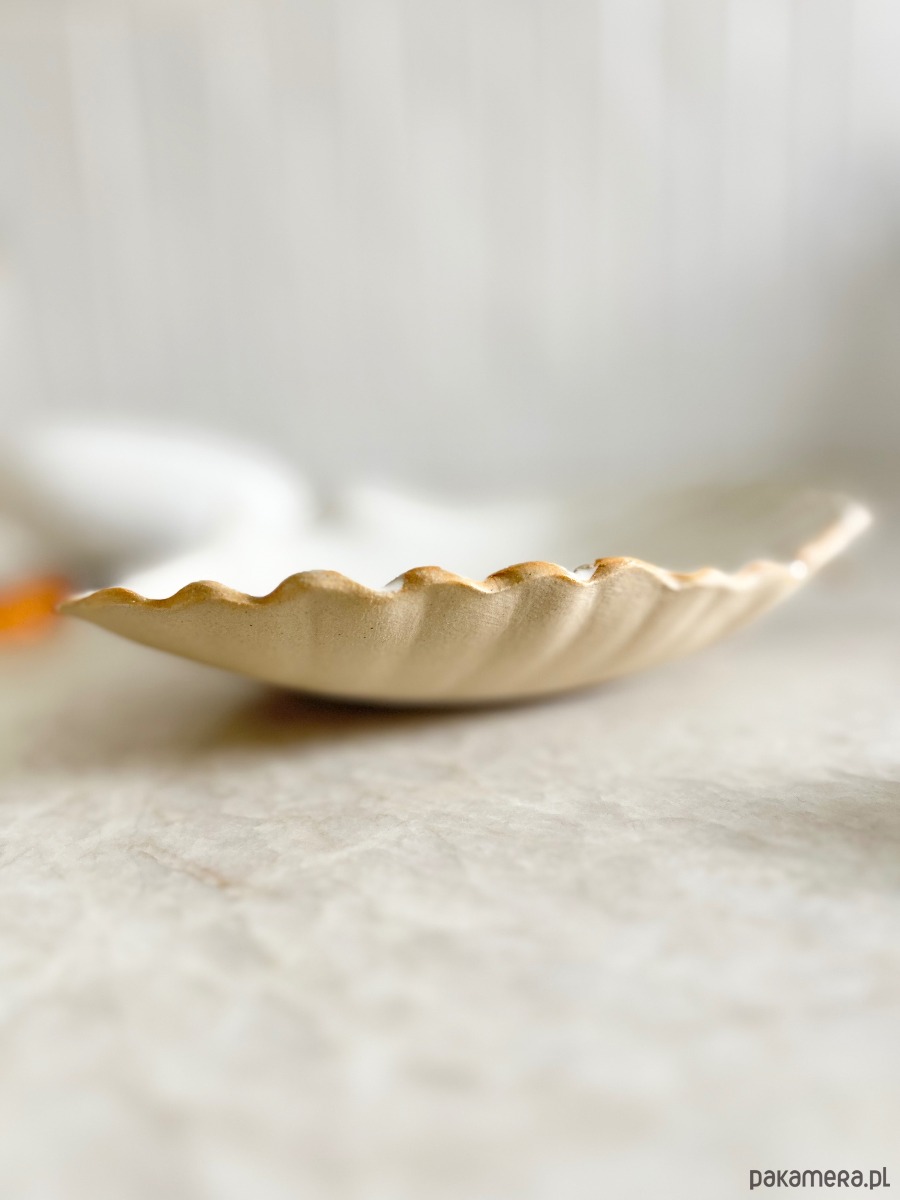 Ręcznie lepiona — każda muszla jest unikatowa, z własnym rytmem i charakterem.