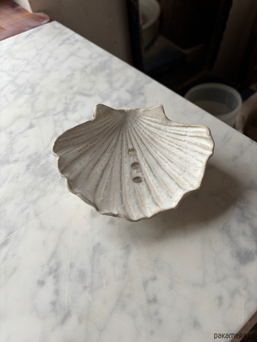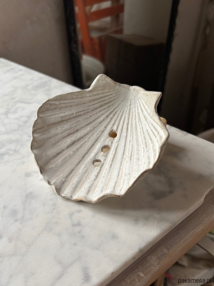 Ceramiczna Mydelniczka Handmade Muszelka Muszla Mleczno Biała