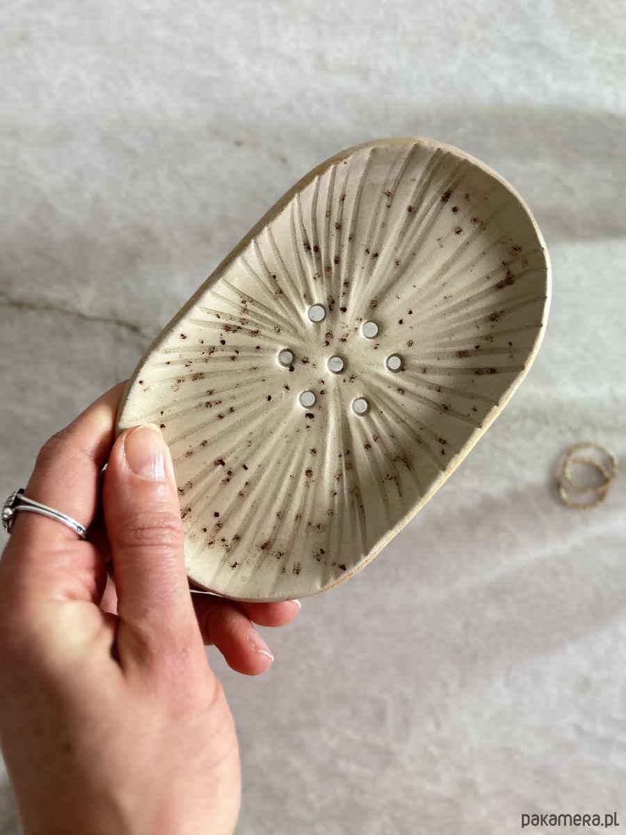 Ręcznie robiona ceramiczna mydelniczka o delikatnej, organicznej formie.