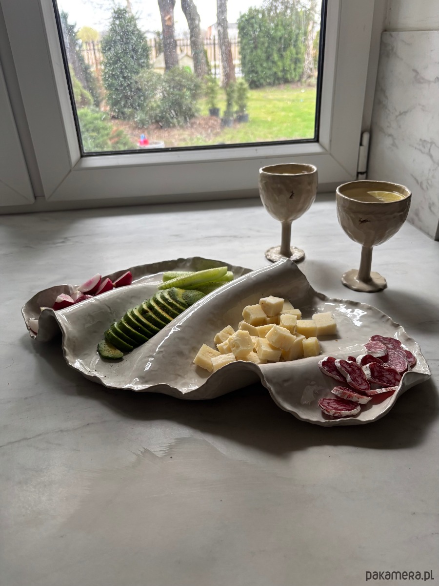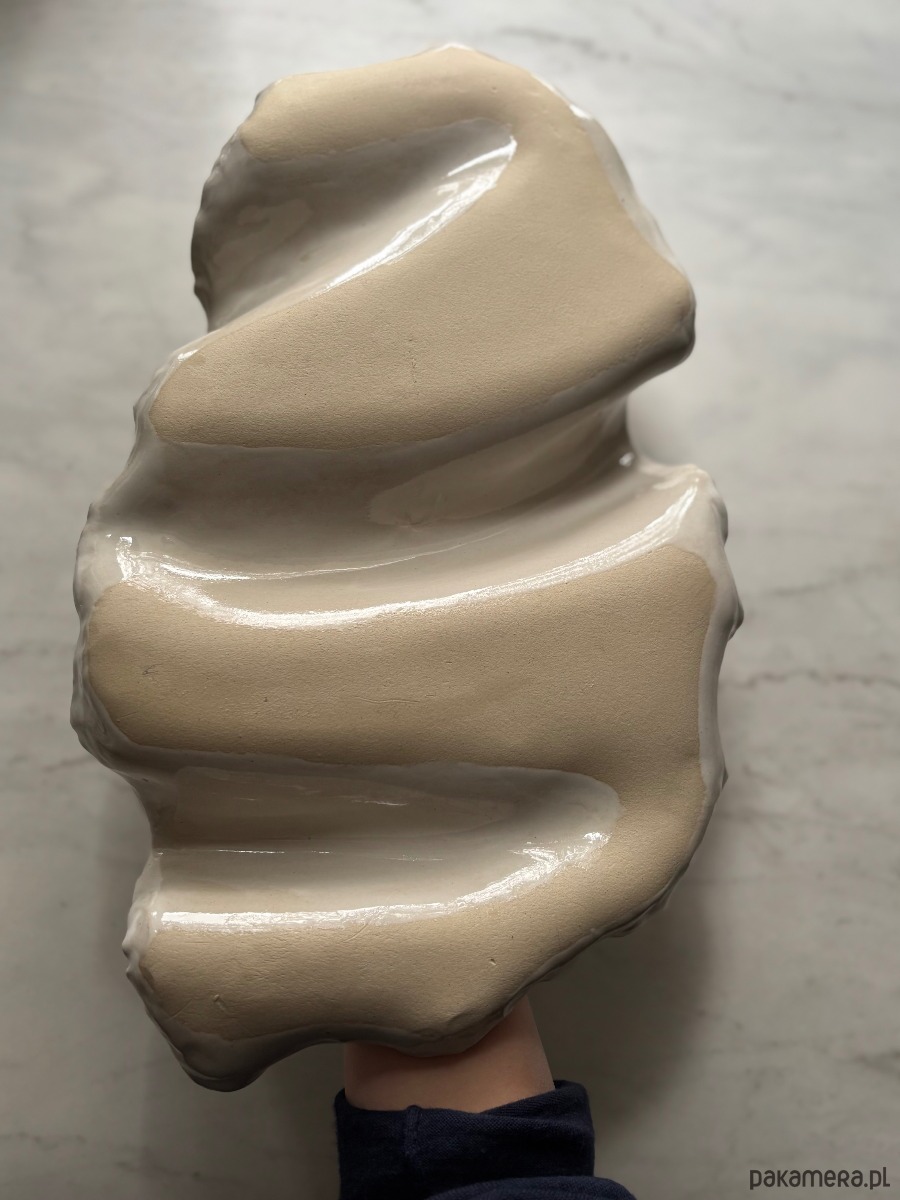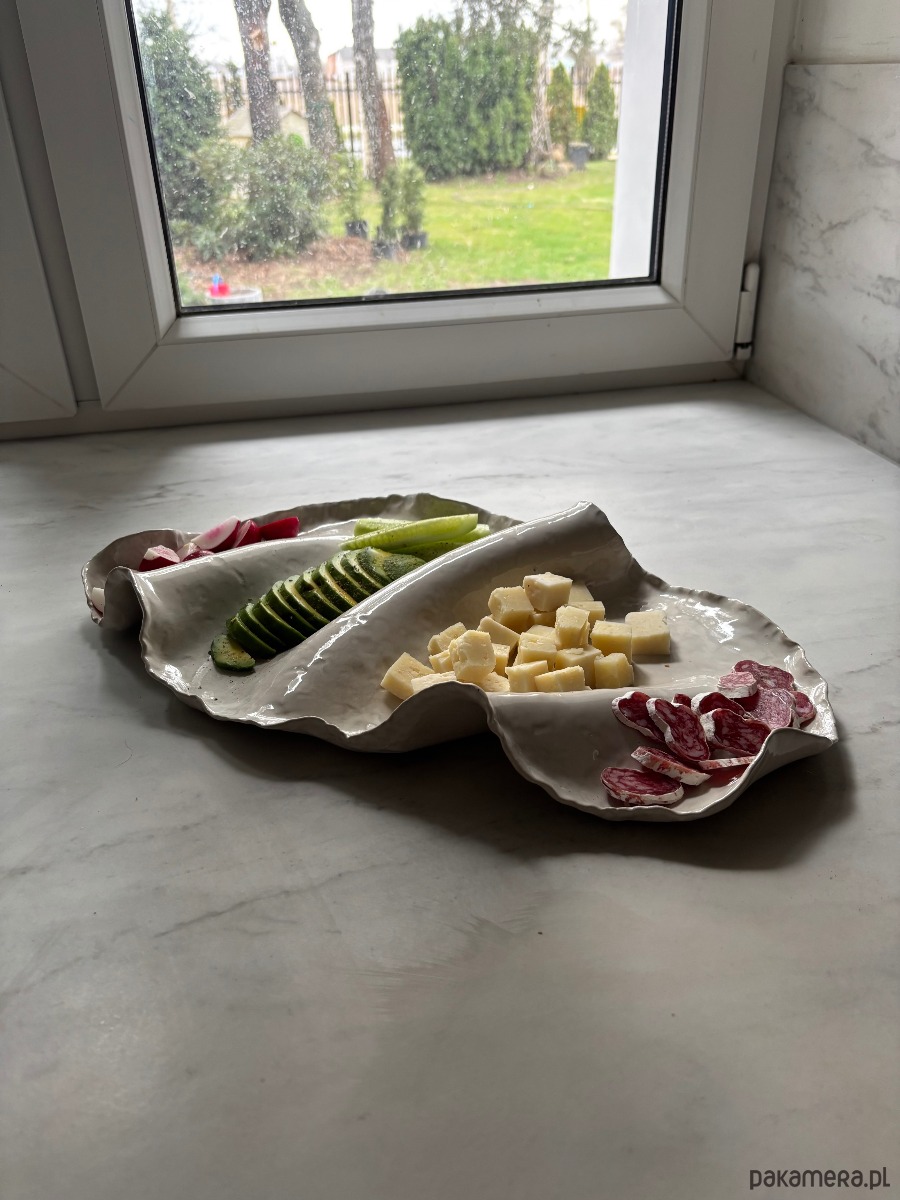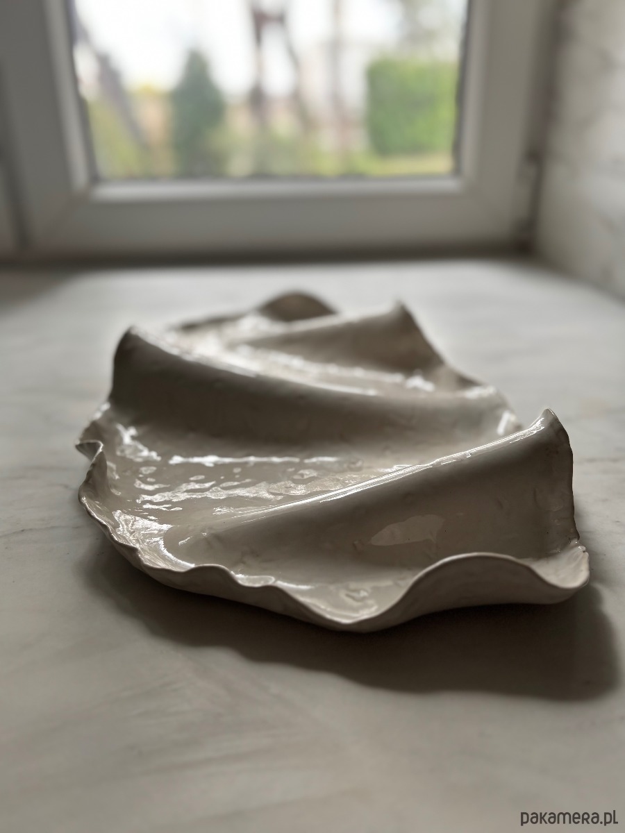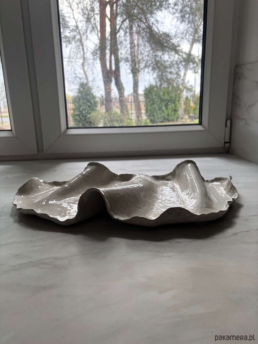 Ceramiczna, unikatowa, ręcznie stworzona patera xxl o organicznym kształcie w kształcie fali.