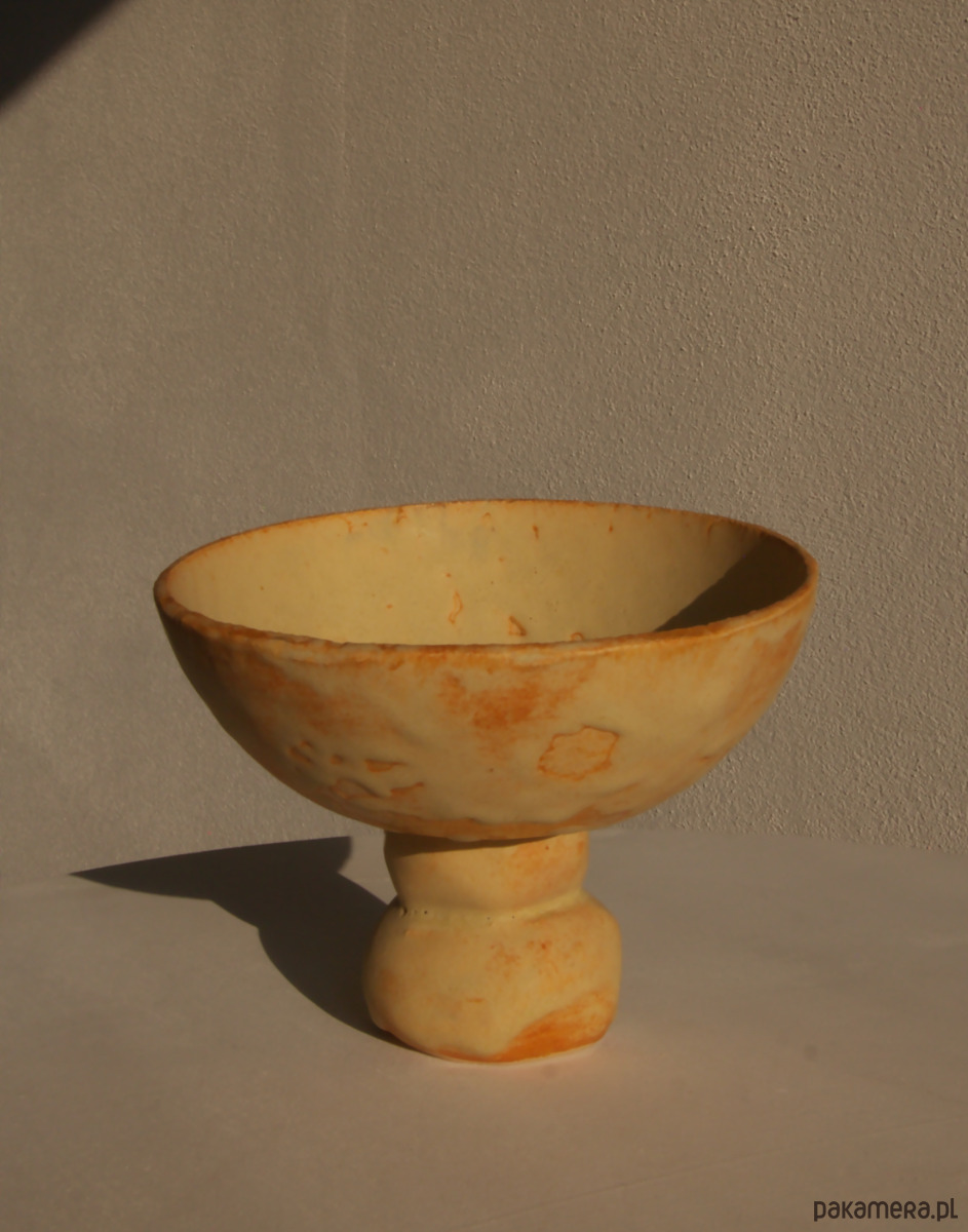 Miękka, organiczna forma sprawia, że obiekt doskonale sprawdzi się jako patera, misa dekoracyjna lub delikatny akcent we wnętrzu. Każdy egzemplarz jest niepowtarzalny — różnice w szkliwie, kolorze i fakturze są świadectwem ręcznego wykonania i nadają pracy indywidualny charakter.