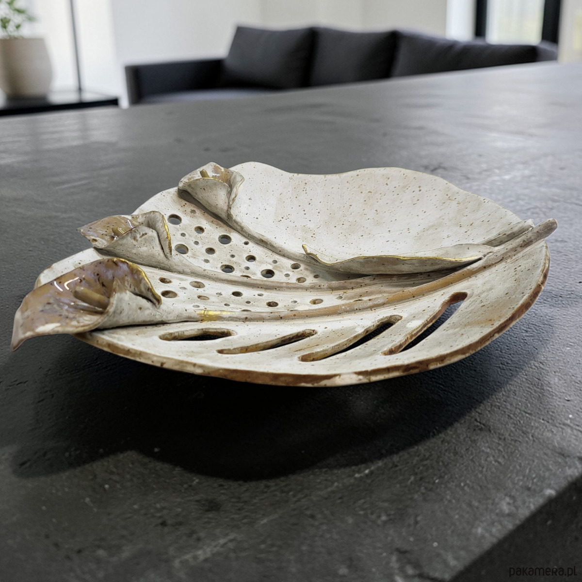 Duża, ręcznie wykonana forma ceramiczna inspirowana naturą.