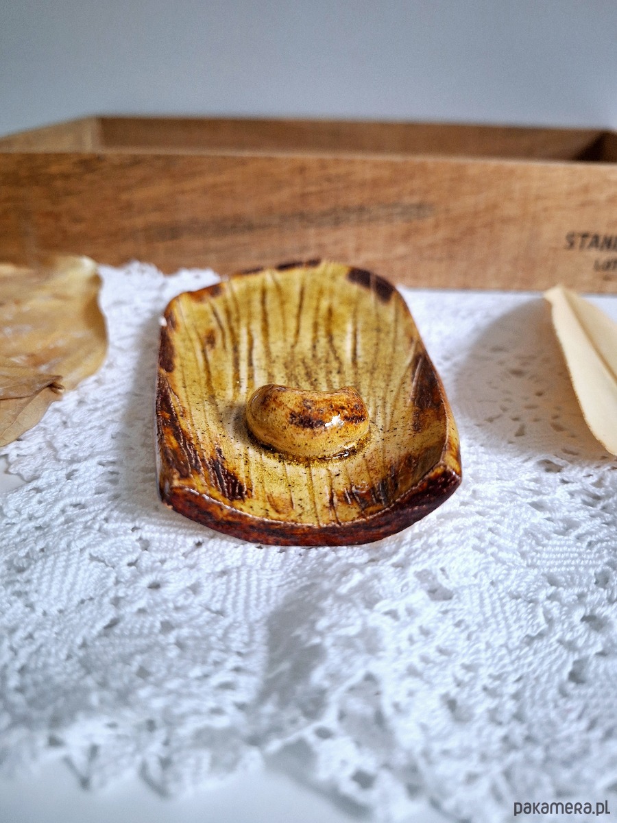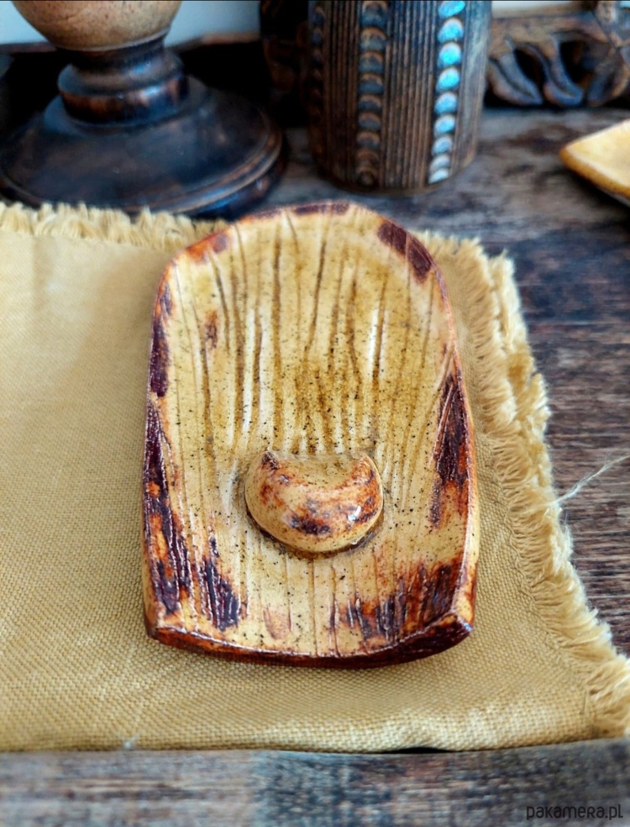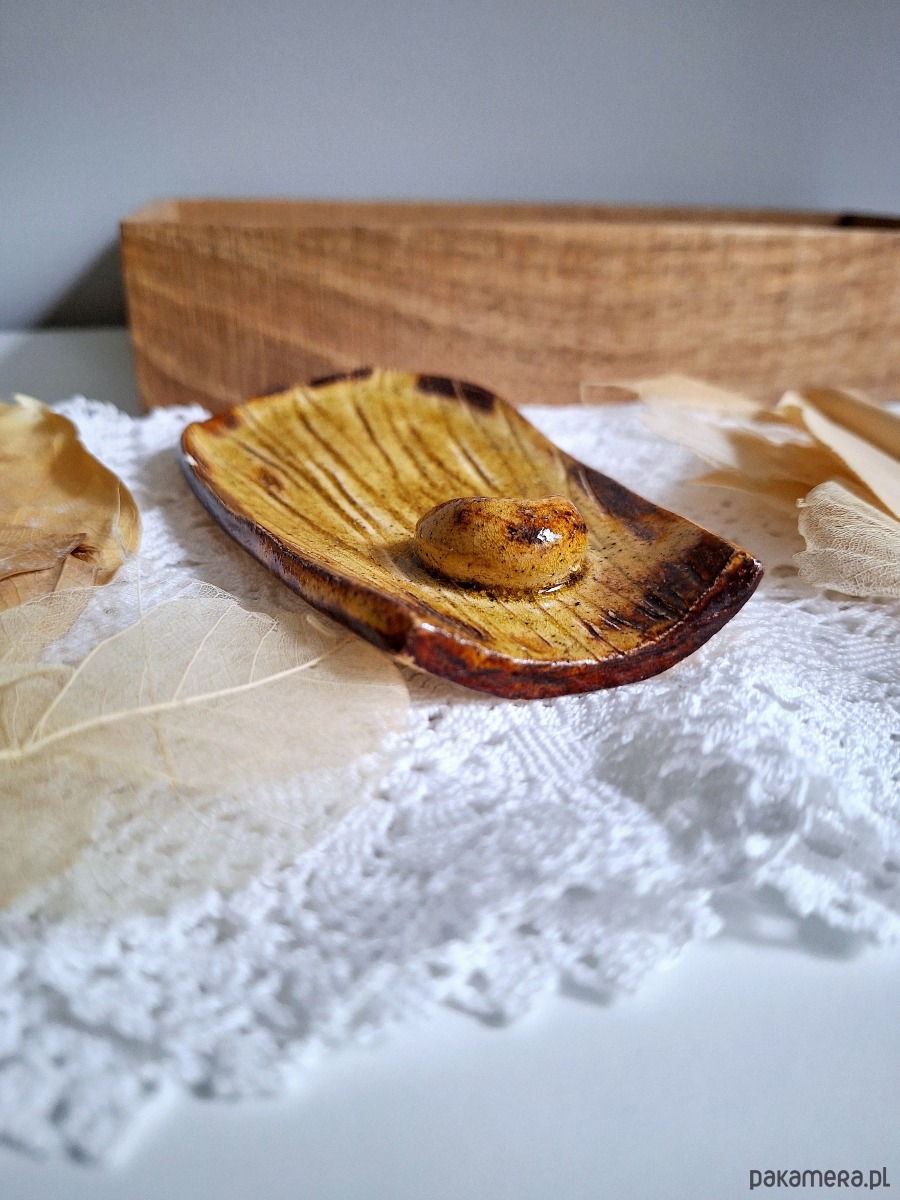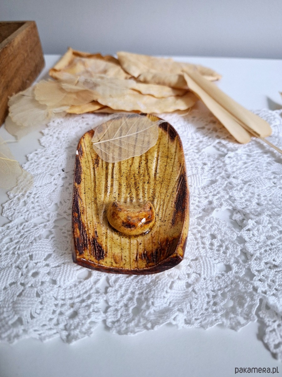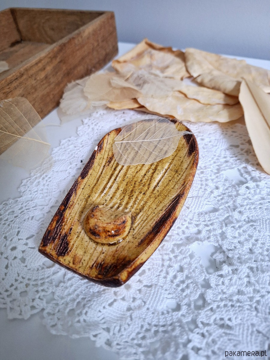 Ceramiczna podstawka dekoracyjna przeznaczona pod kadzidła i palo santo, może również służyć jako podstawka na biżuterię, klucze, drobiazgi.