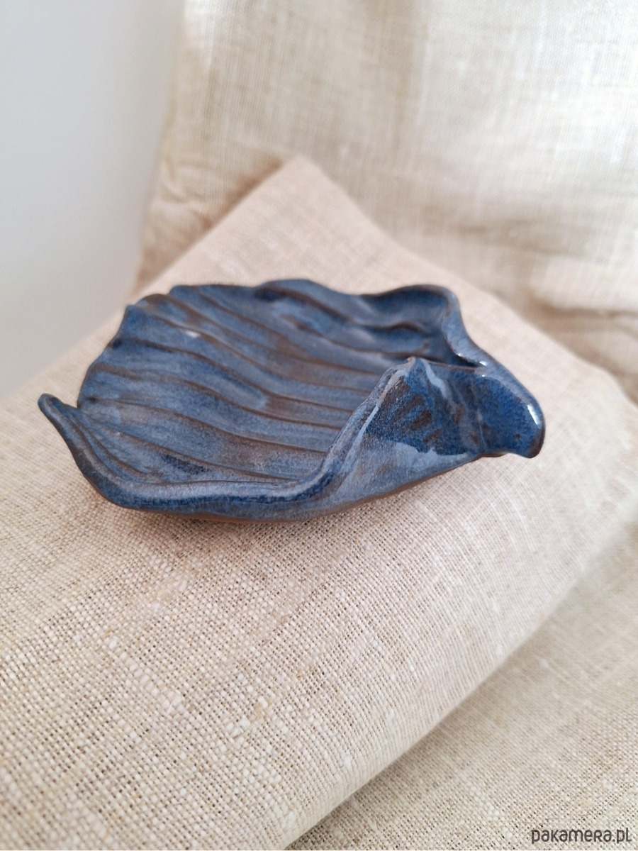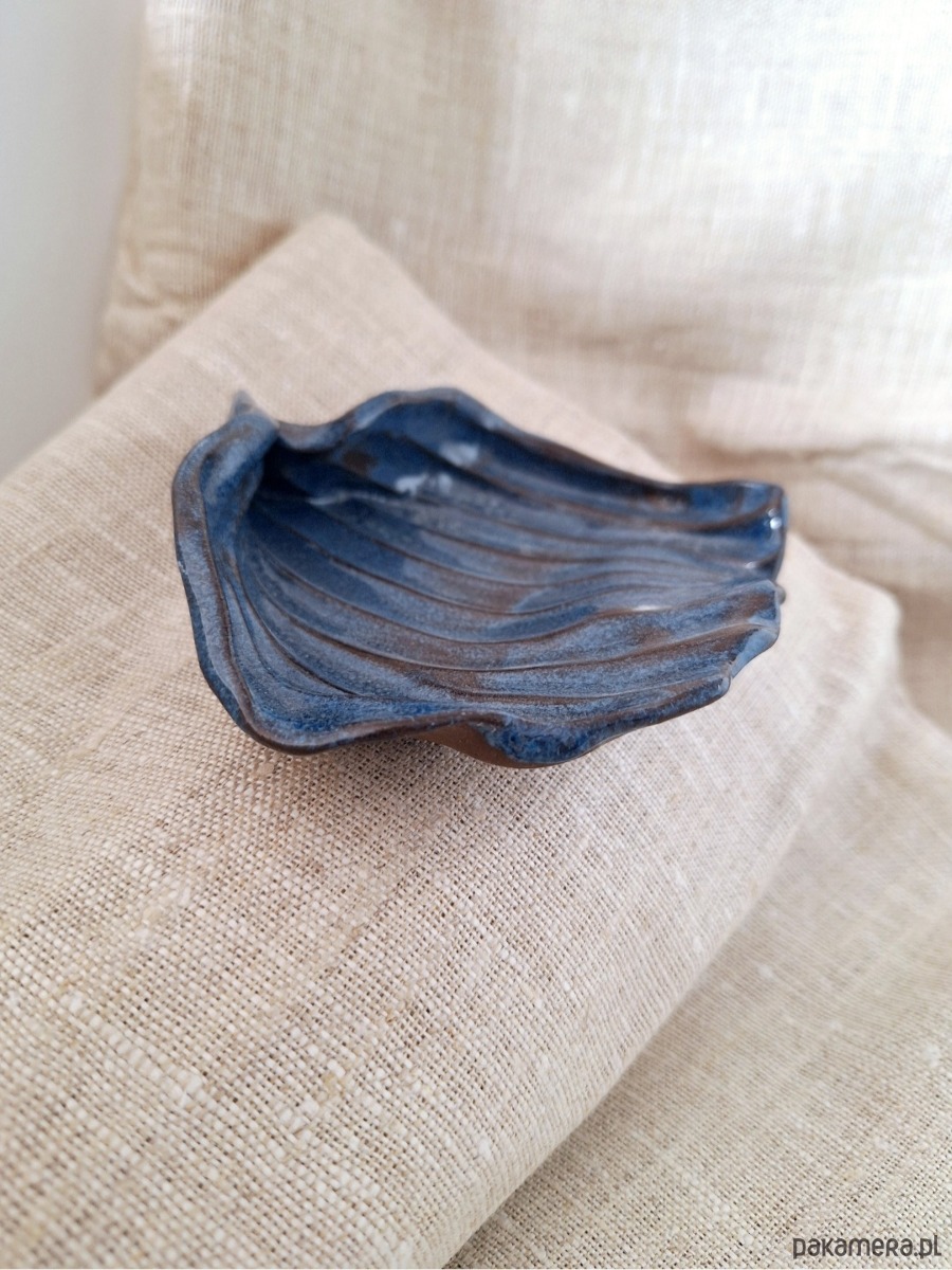 Ceramiczna podstawka dekoracyjna w kształcie muszli, przeznaczona pod kadzidła i palo santo, może również służyć jako podstawka na biżuterię, klucze, drobiazgi.
