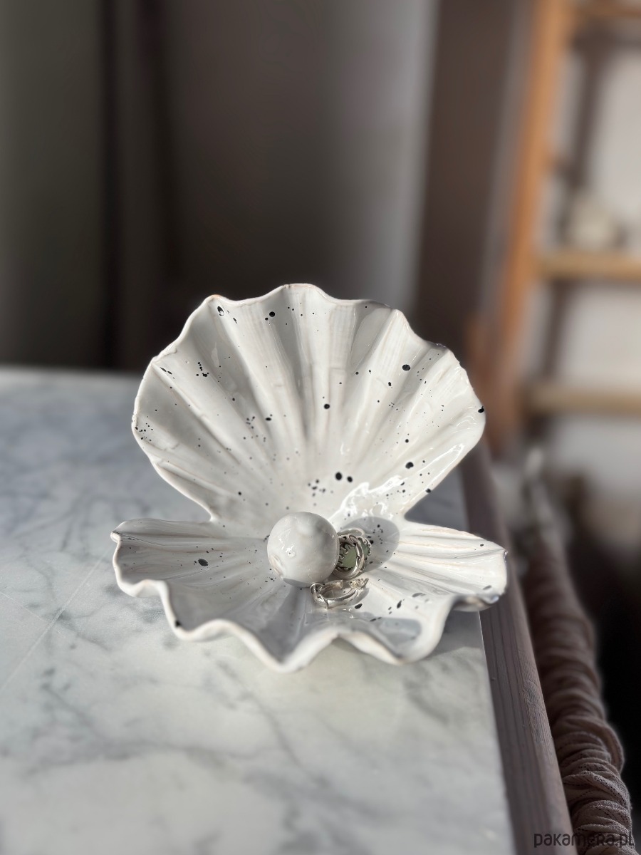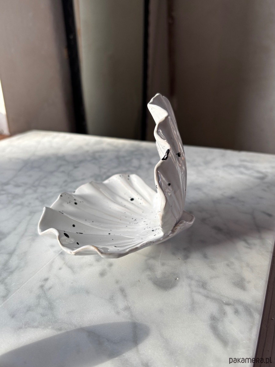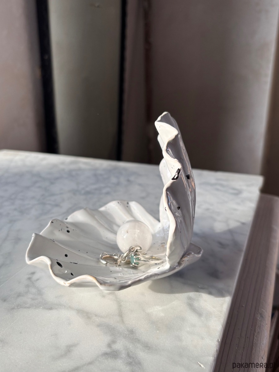 Autorska ceramiczna podstawka w kształcie otwartej muszli. Idealna na biżuterię, kryształy lub po prostu ukochane drobiazgi. Muszla jest stworzona przez Moni, założycielkę marki Maison Fragile. Każda jest lepiona i szkliwiona bez użycia form, co sprawia, że każdy egzemplarz jest unikatowy.
