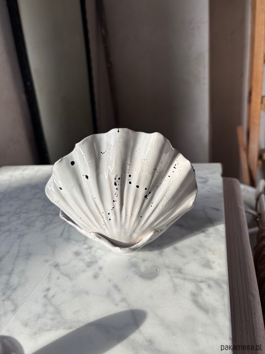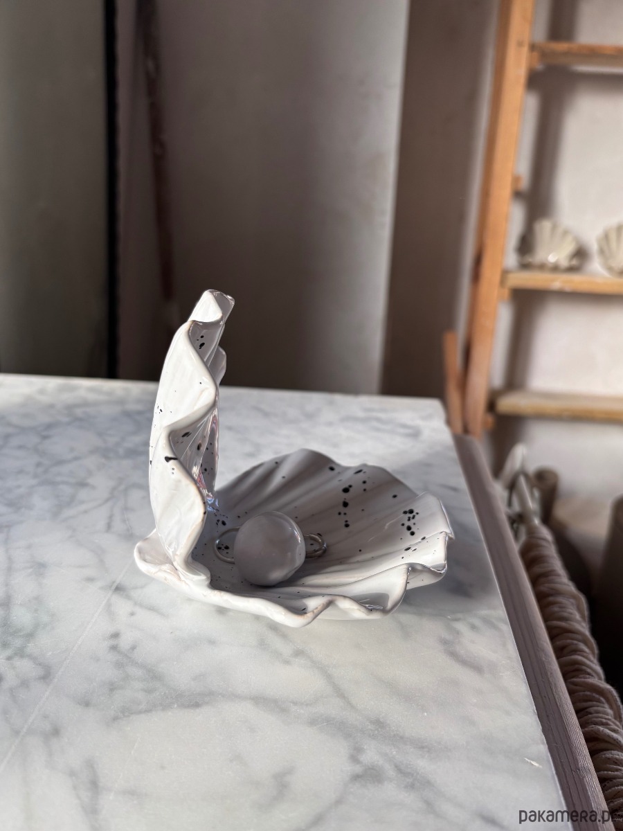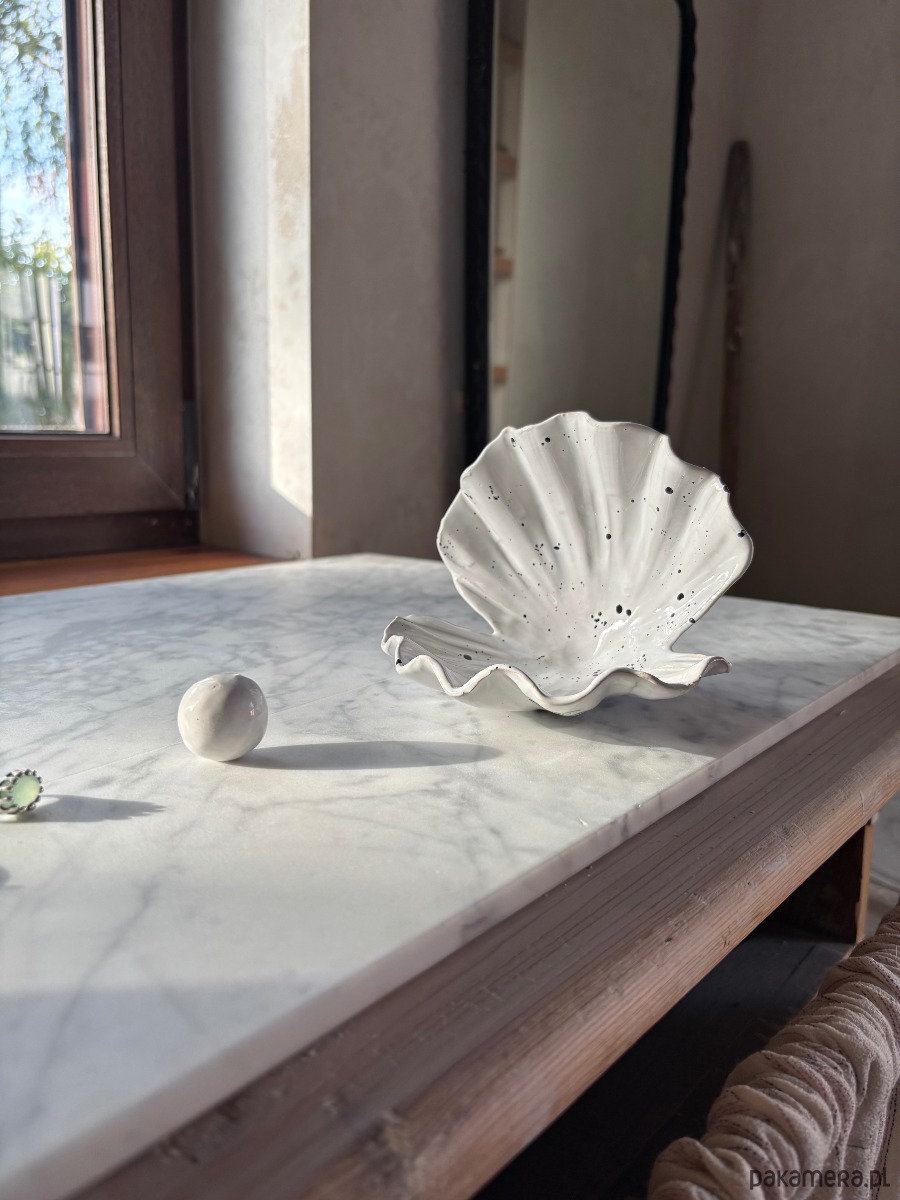 Autorska ceramiczna podstawka w kształcie otwartej muszli. Idealna na biżuterię, kryształy lub po prostu ukochane drobiazgi. Muszla jest stworzona przez Moni, założycielkę marki Maison Fragile. Każda jest lepiona i szkliwiona bez użycia form, co sprawia, że każdy egzemplarz jest unikatowy.