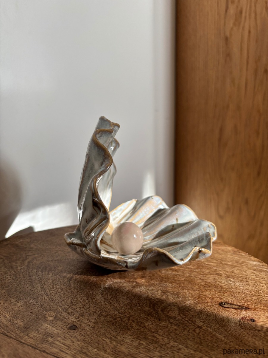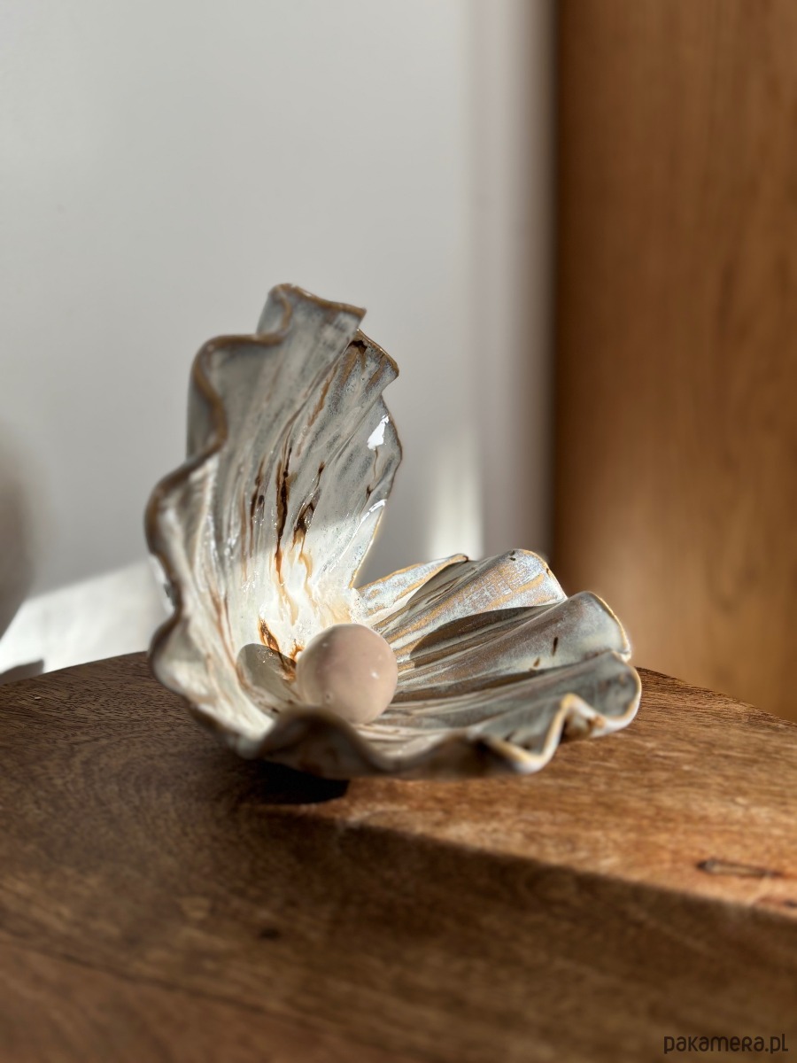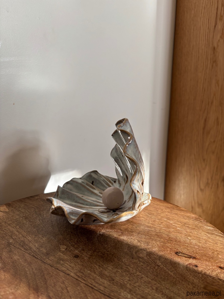 Autorska ceramiczna podstawka w kształcie otwartej muszli. Idealna na biżuterię, palo santo, kryształy lub po prostu ukochane drobiazgi. Muszla jest stworzona przez Moni, założycielkę marki Maison Fragile. Każda jest lepiona i szkliwiona bez użycia form, co sprawia, że każdy egzemplarz jest unikatowy.