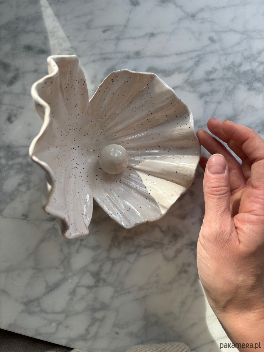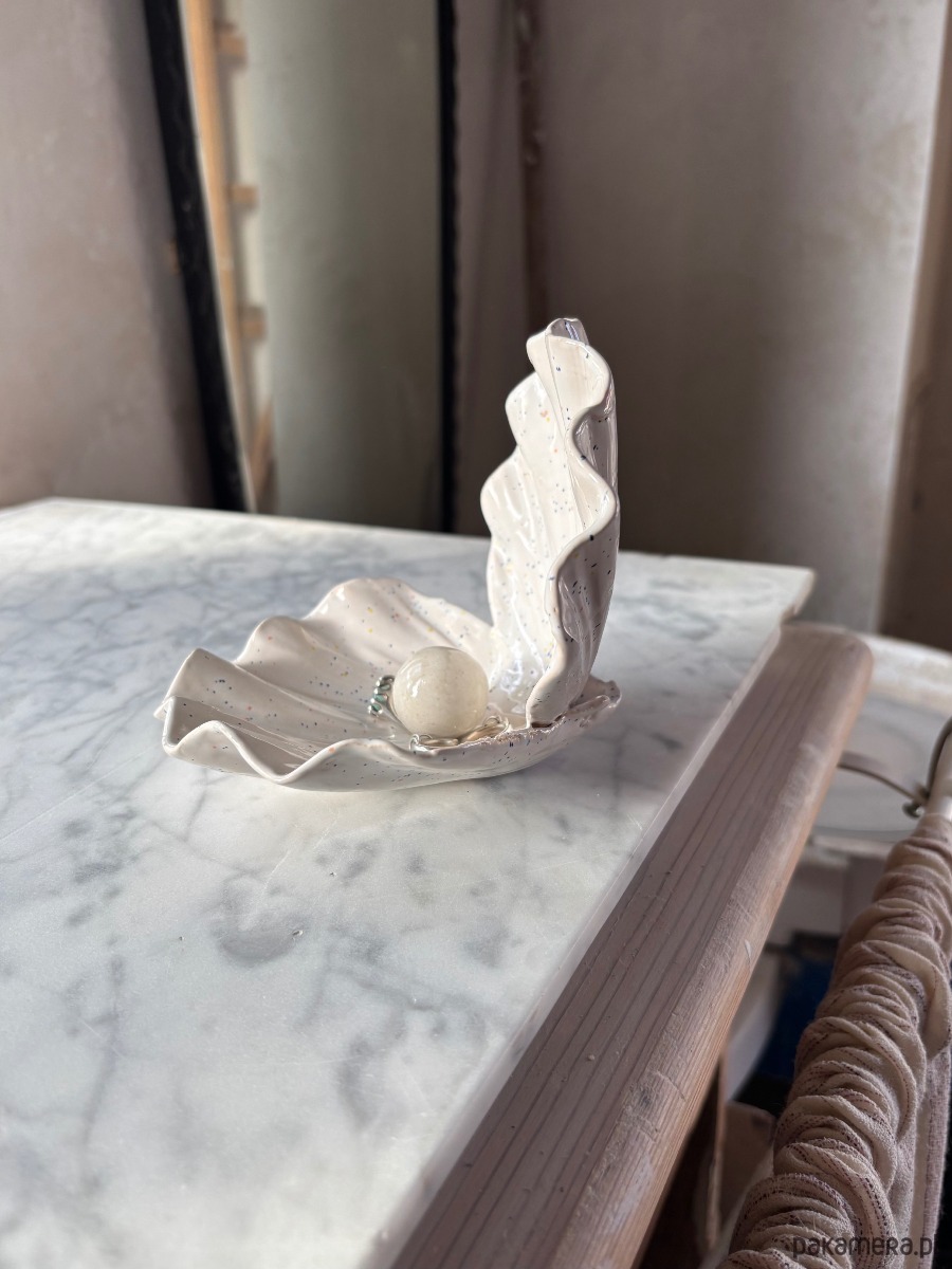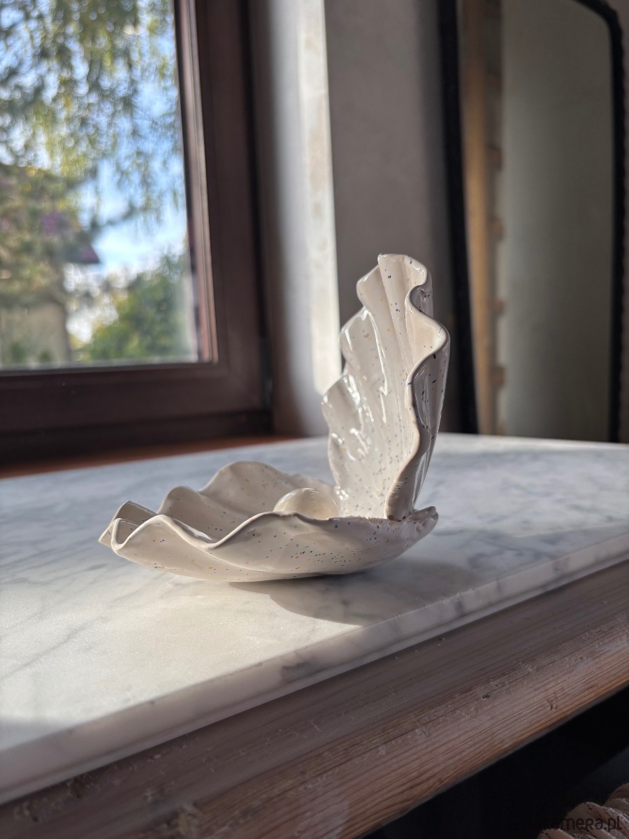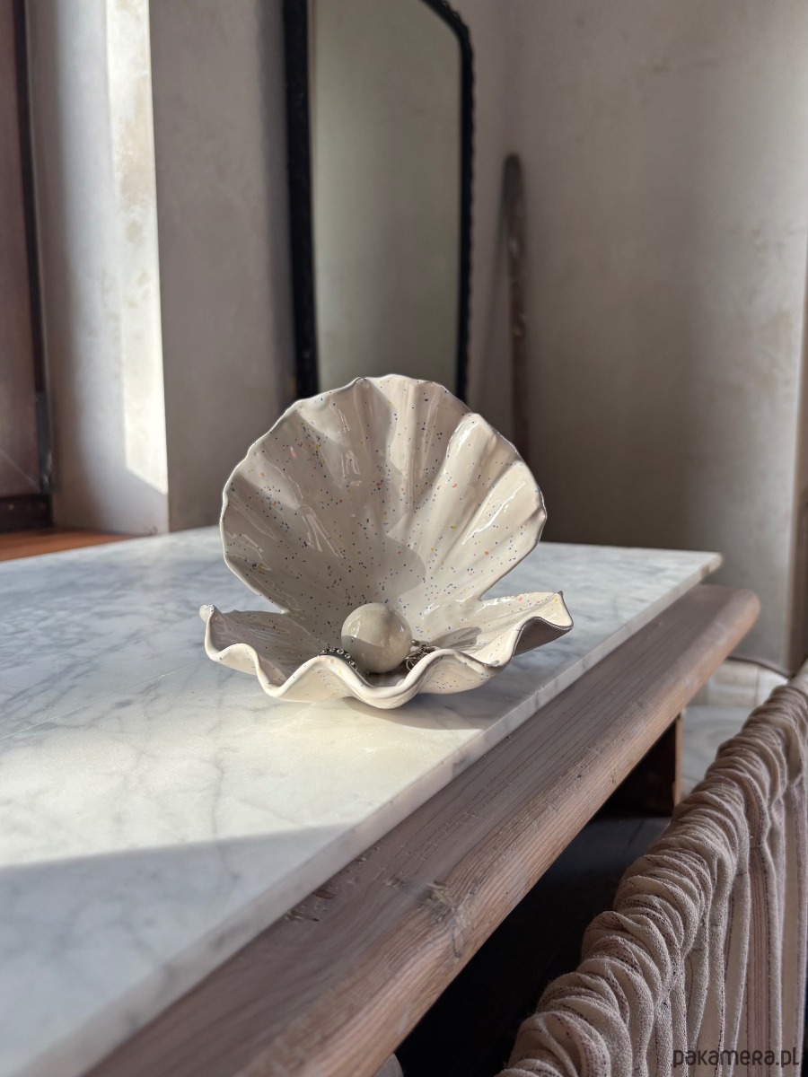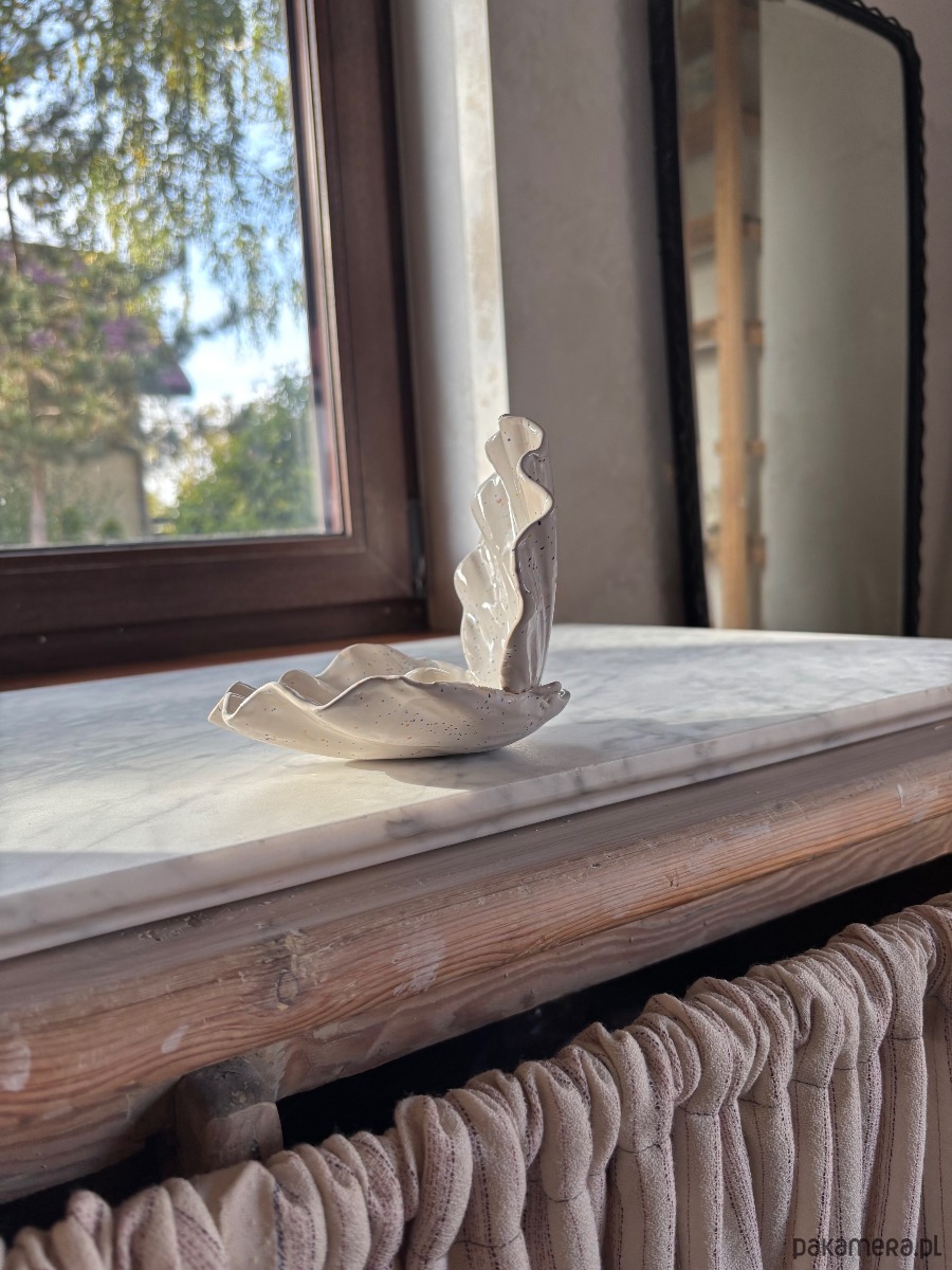 Autorska ceramiczna podstawka w kształcie otwartej muszli. Idealna na biżuterię, kryształy lub po prostu ukochane drobiazgi. Muszla jest stworzona przez Moni, założycielkę marki Maison Fragile. Każda jest lepiona i szkliwiona bez użycia form, co sprawia, że każdy egzemplarz jest unikatowy.