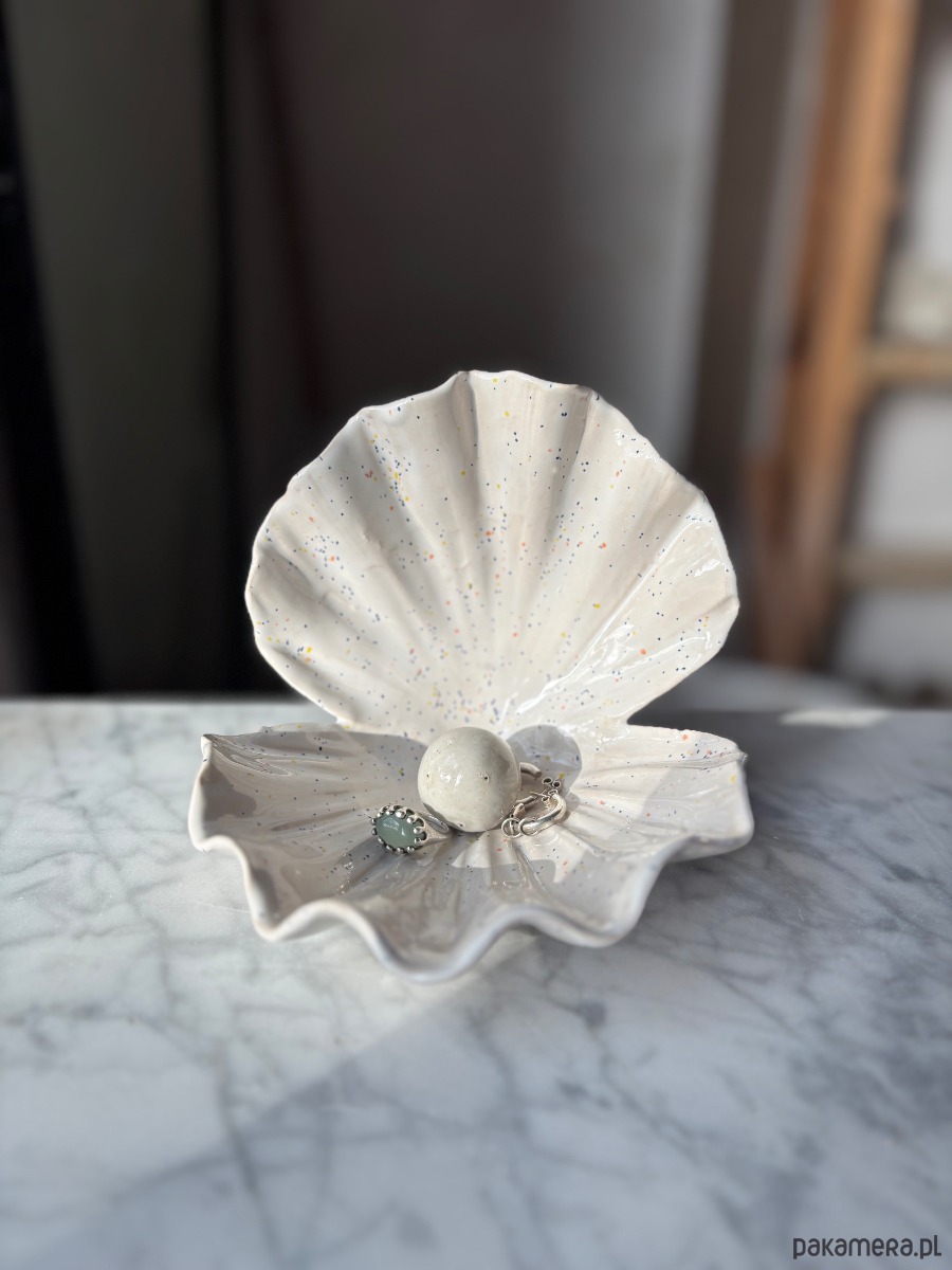 Ceramiczna Podstawka na Biżuterię Muszla Skarbiec Konfetti