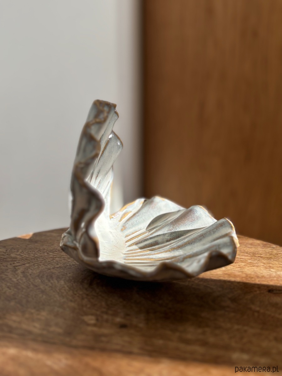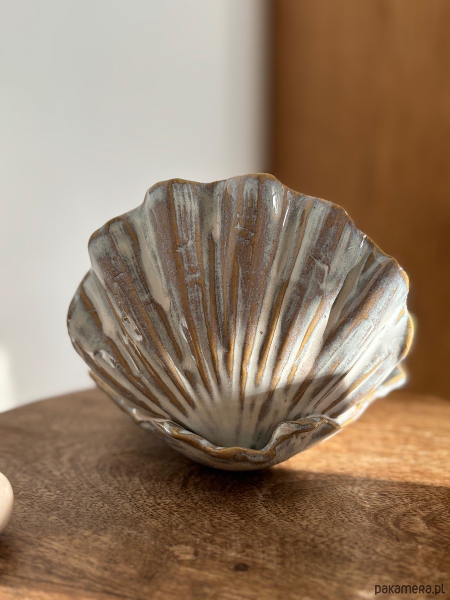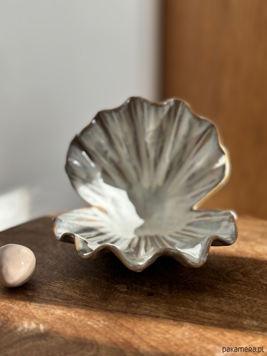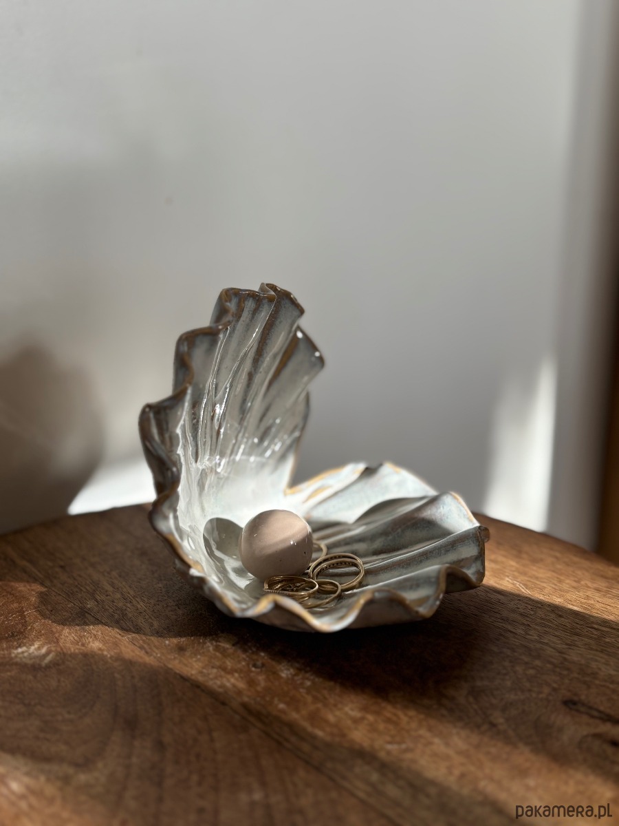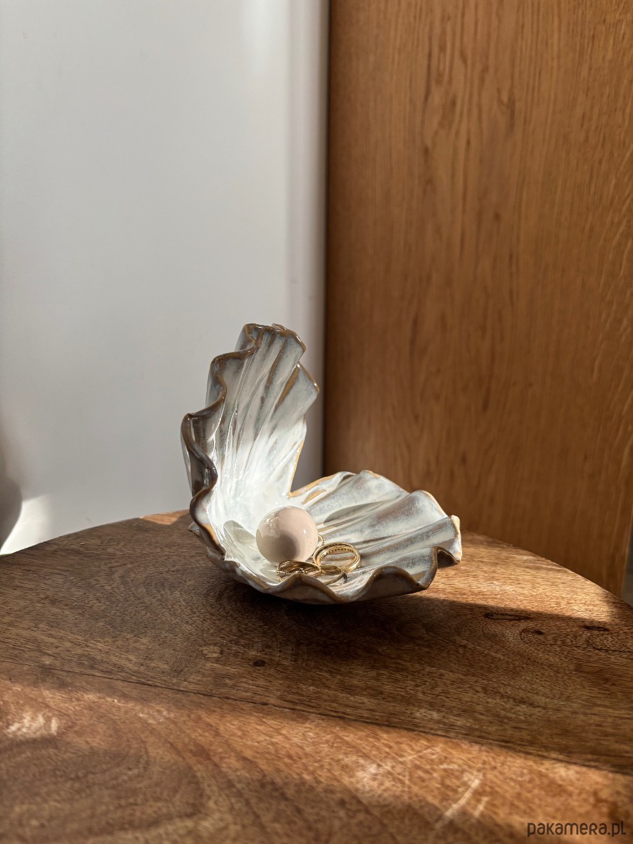 Autorska ceramiczna podstawka w kształcie otwartej muszli. Idealna na biżuterię, palo santo, kryształy lub po prostu ukochane drobiazgi. Muszla jest stworzona przez Moni, założycielkę marki Maison Fragile. Każda jest lepiona i szkliwiona bez użycia form, co sprawia, że każdy egzemplarz jest unikatowy.
