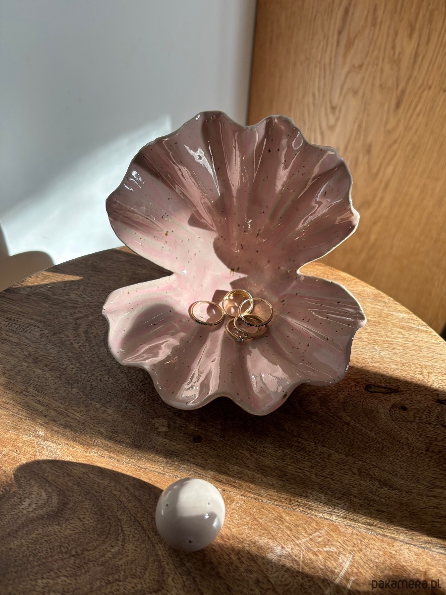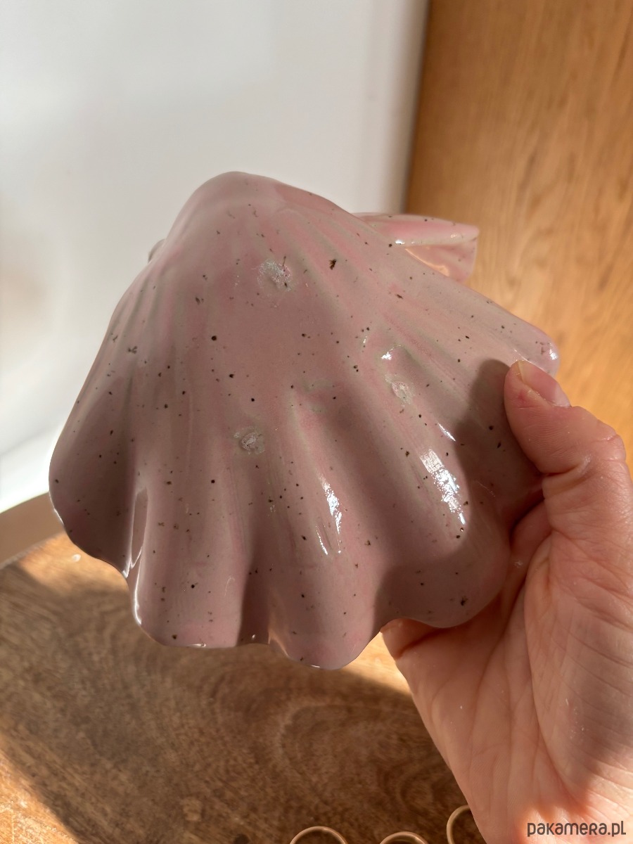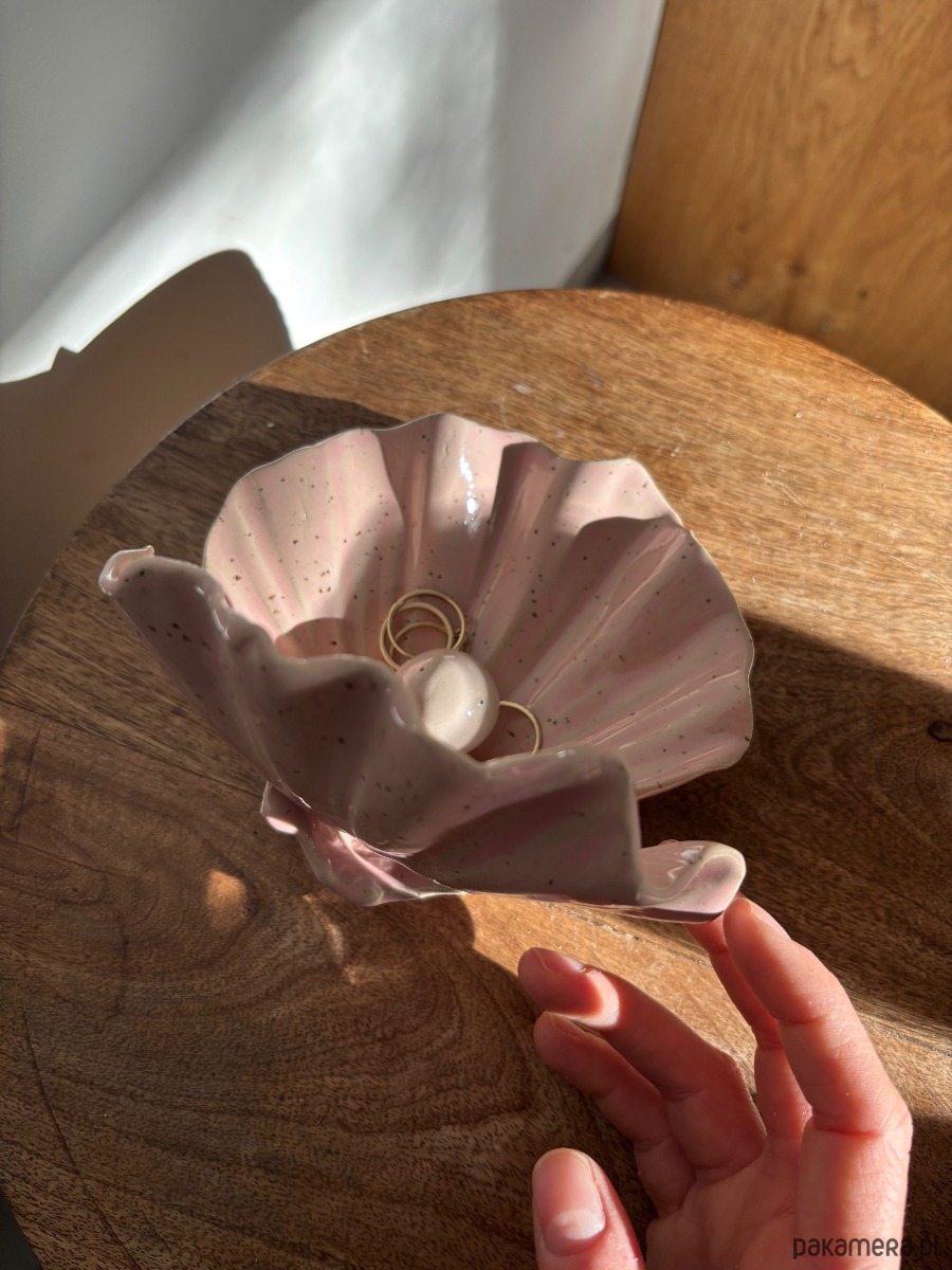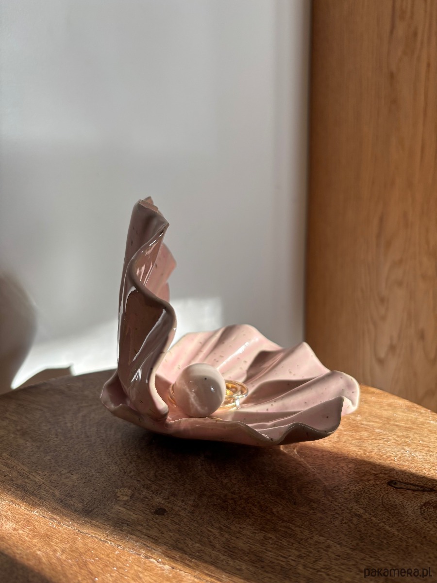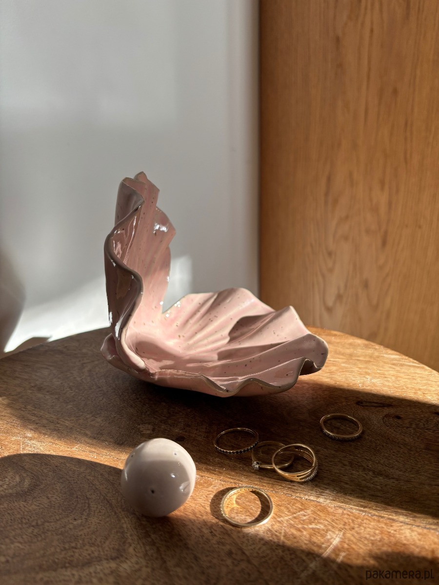 Autorska ceramiczna podstawka w kształcie otwartej muszli. Idealna na biżuterię, palo santo, kryształy lub po prostu ukochane drobiazgi. Muszla jest stworzona przez Moni, założycielkę marki Maison Fragile. Każda jest lepiona i szkliwiona bez użycia form, co sprawia, że każdy egzemplarz jest unikatowy.