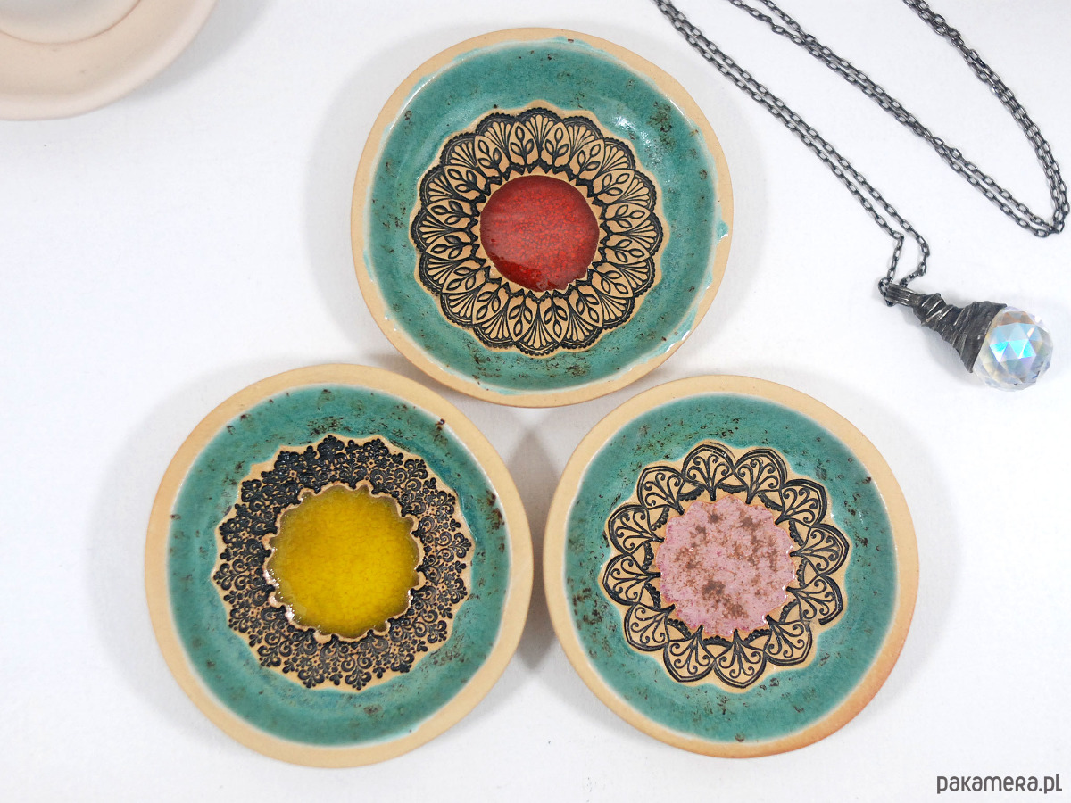 Ręcznie robiona i malowana ceramiczna miseczka, którą możesz wykorzystać do przechowywania swoich małych skarbów - biżuterii, pierścionków czy innych drobiazgów. Możesz ją również wykorzystać jako podstawkę pod kadzidełko, ustawiając na niej stojak na kadzidło. Miseczka sprawdzi się również jako podstawka na świecę lub tealight.