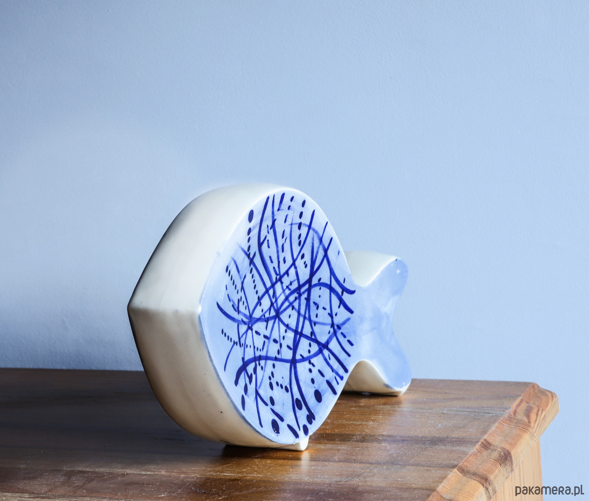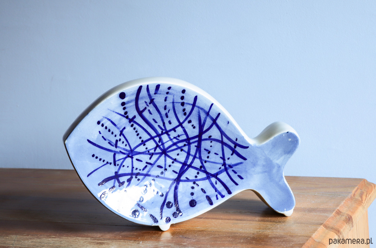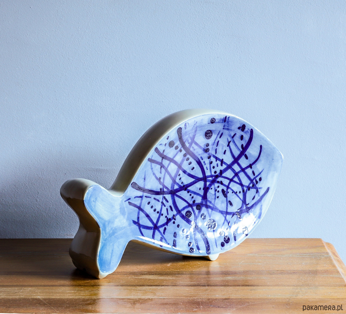 Ceramiczna Ryba, malowana ręcznie farbami podszkliwnymi , pokryta bezbarwnym szkliwem.
