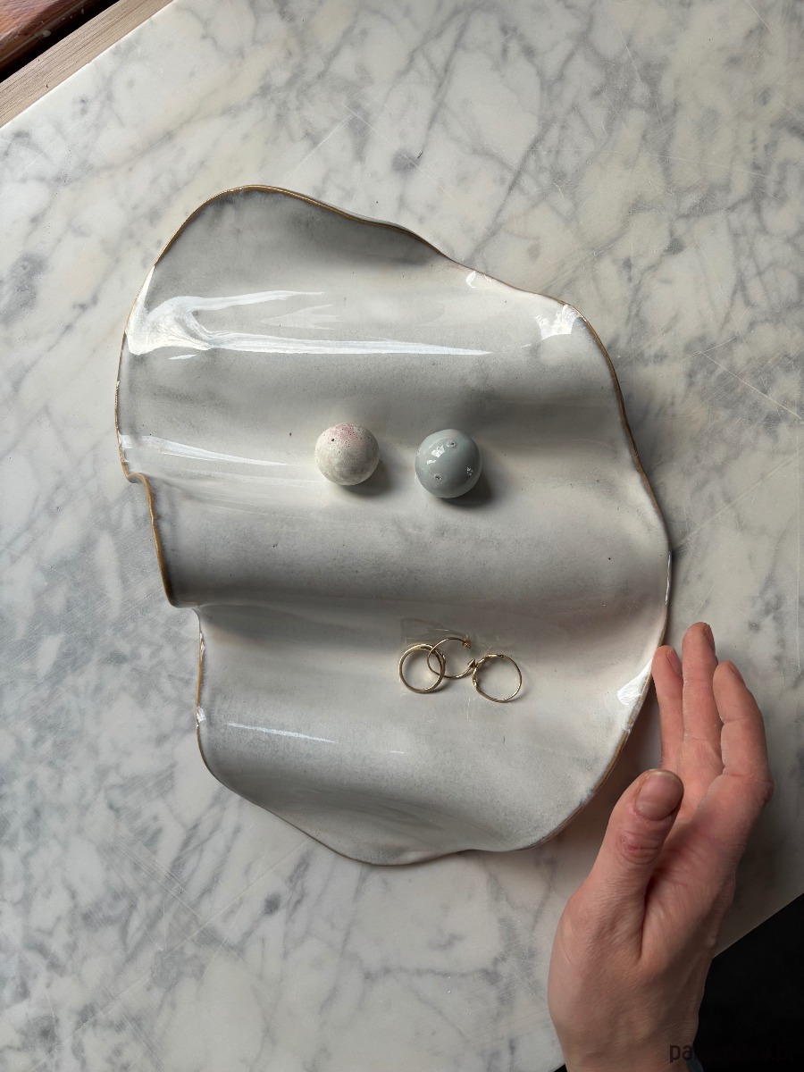 Ceramic plate in oyster shape. Perfect for keeping your jewels, tea candle or your favourite treasures.