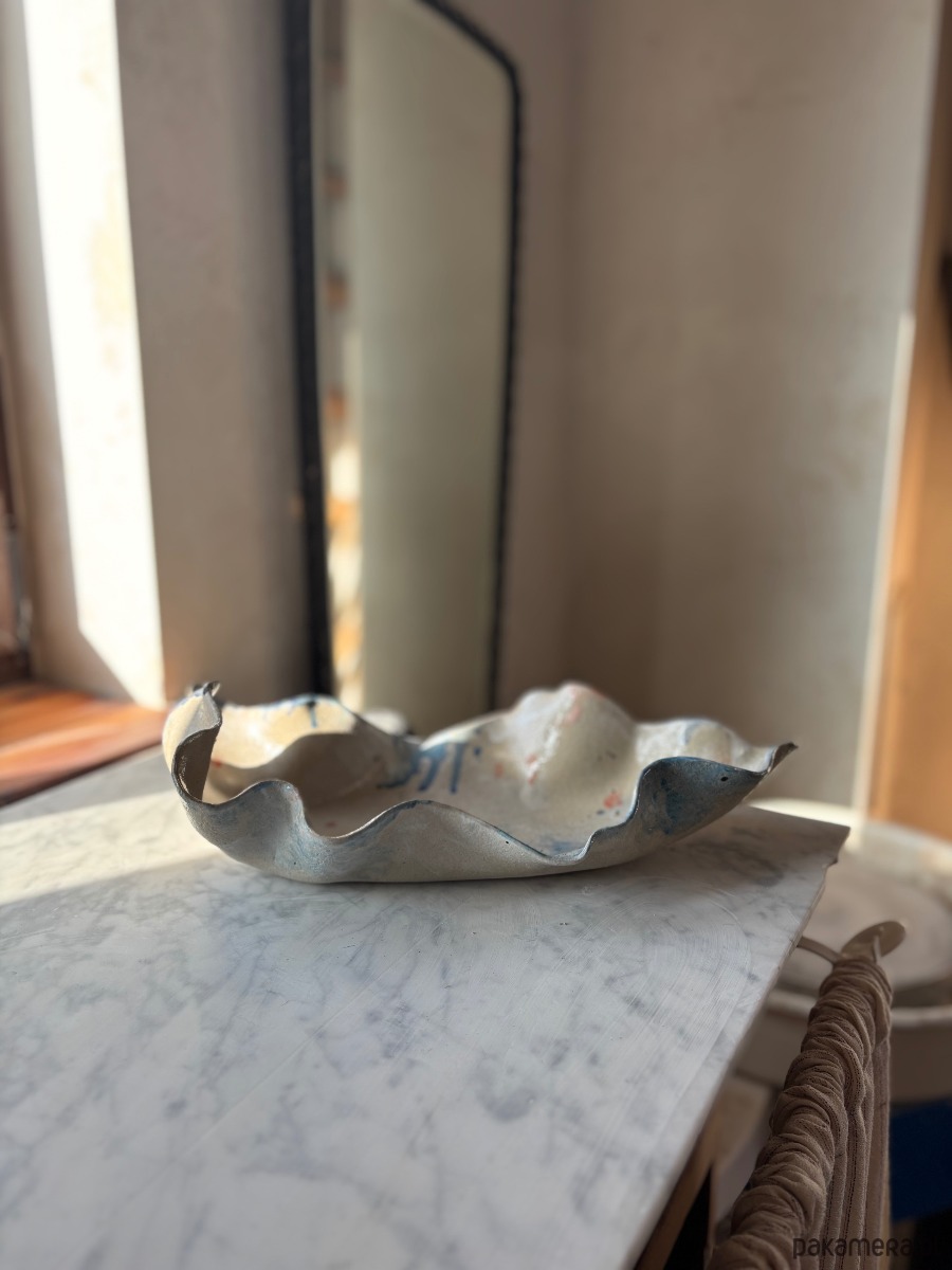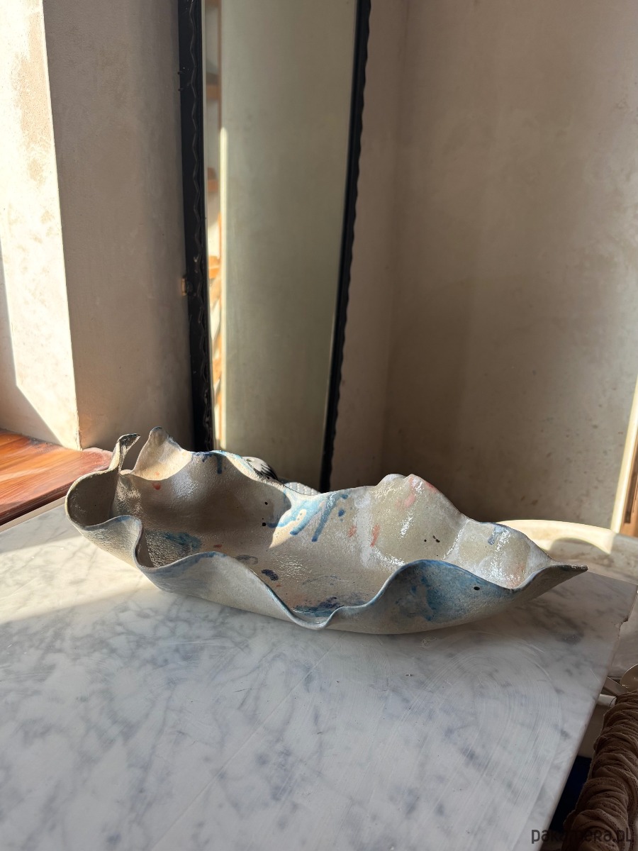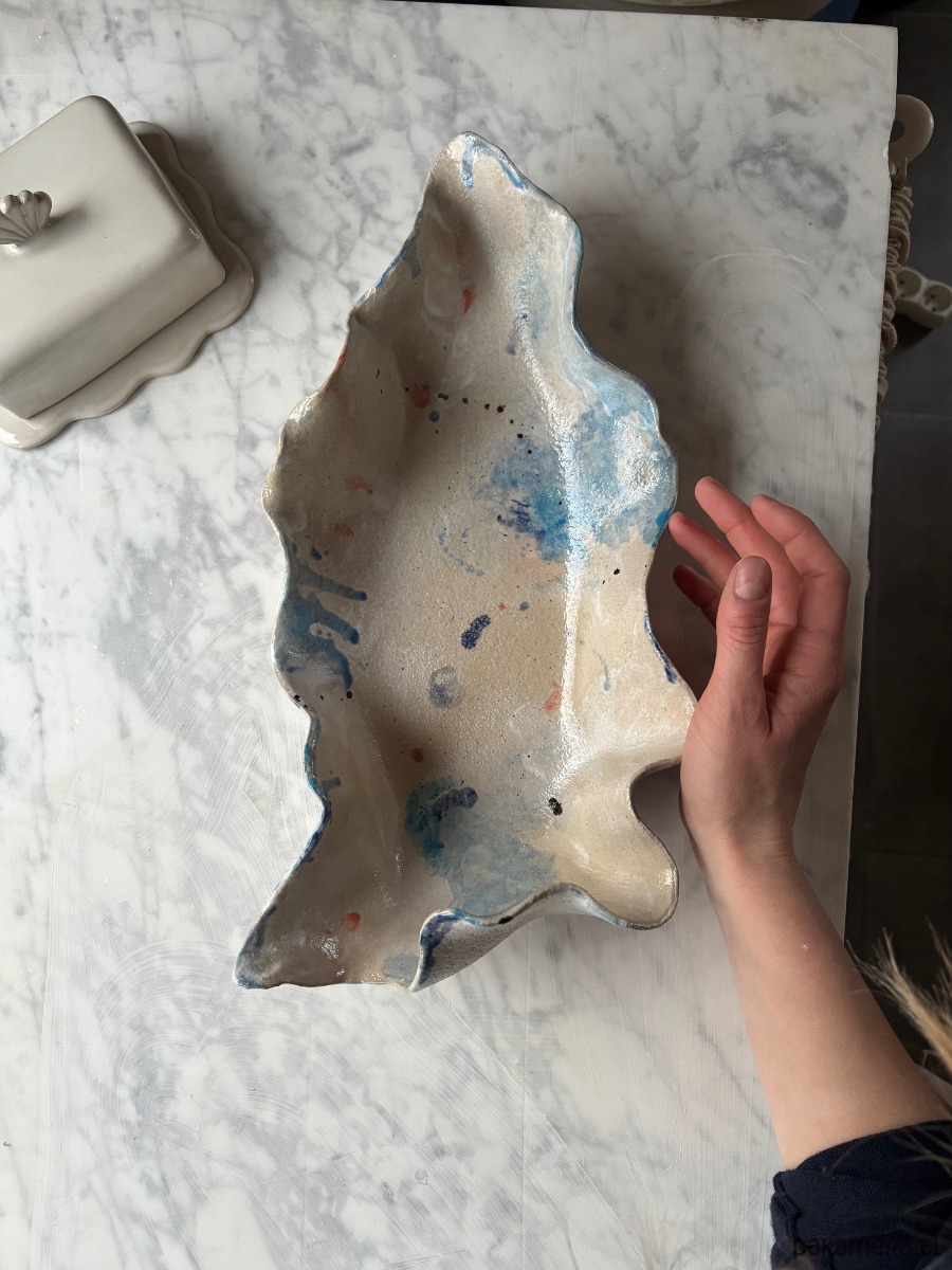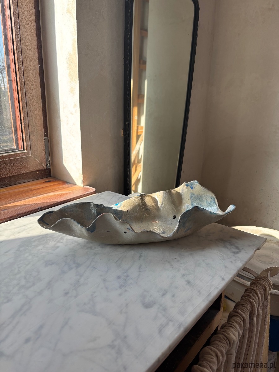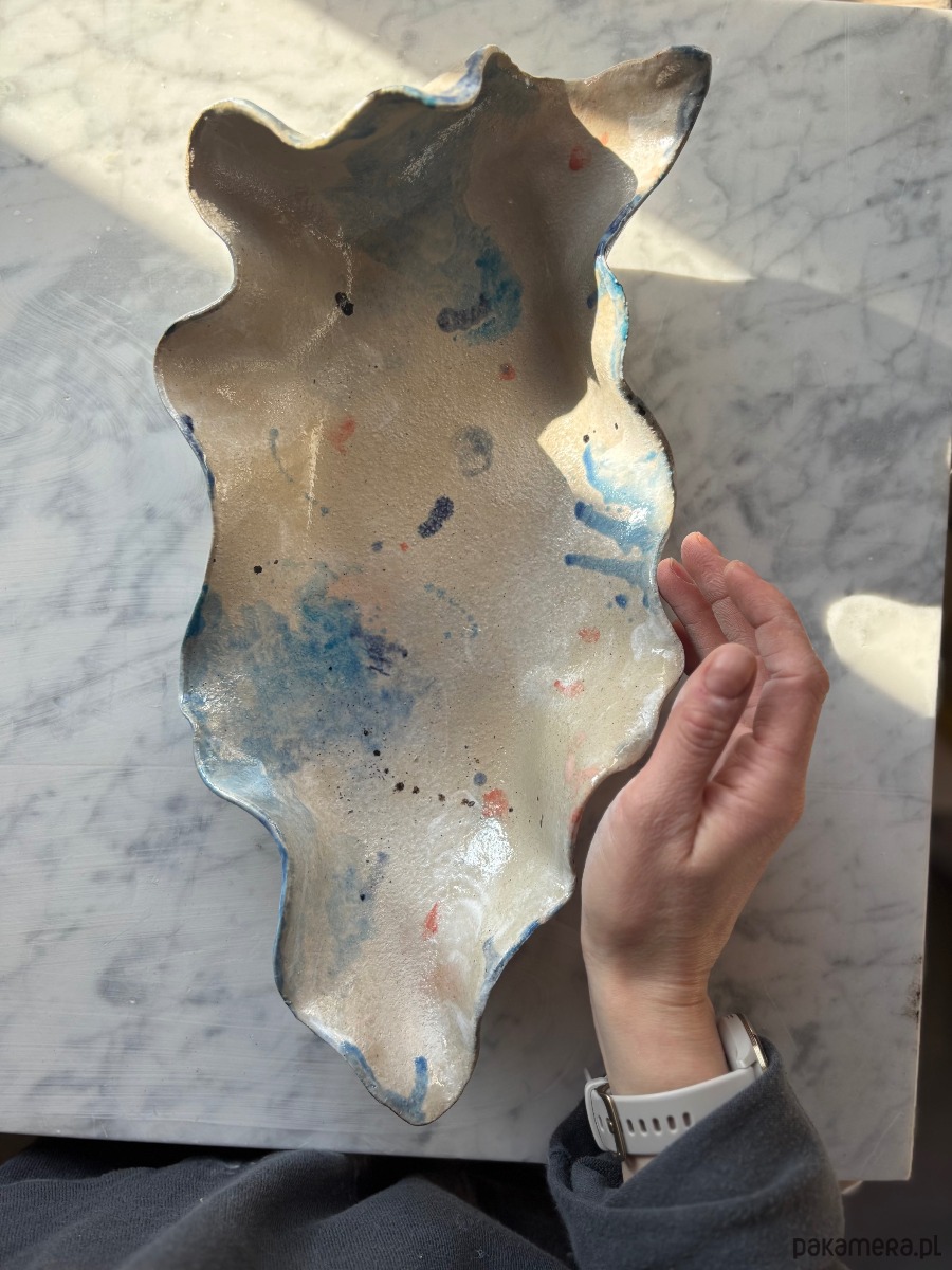 Ceramiczna, unikatowa, ręcznie stworzona patera w kształcie ostrygi z autorskiej serii "Paint on Ceramics Like on Canvas".