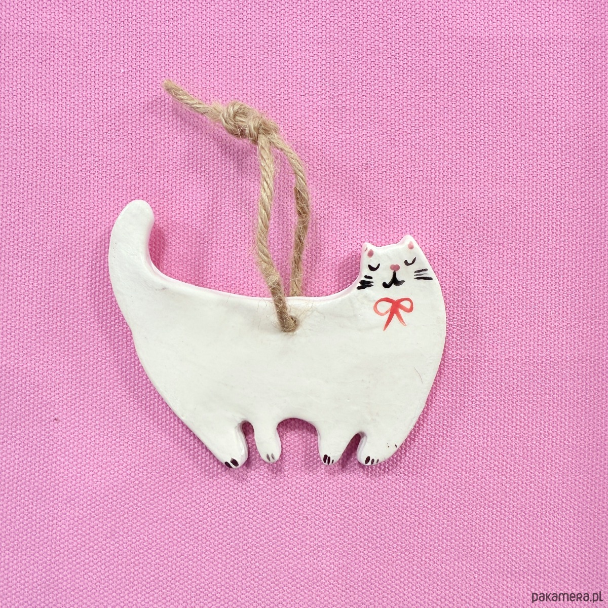 Ceramiczna ozdoba na choinkę w kształcie kotka wykonana własnoręcznie - jedyna w swoim rodzaju.
