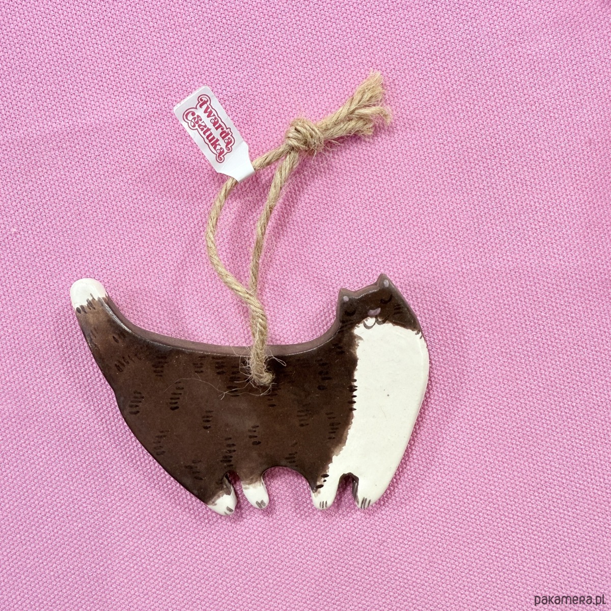 Ceramiczna ozdoba na choinkę w kształcie kotka wykonana własnoręcznie - jedyna w swoim rodzaju.