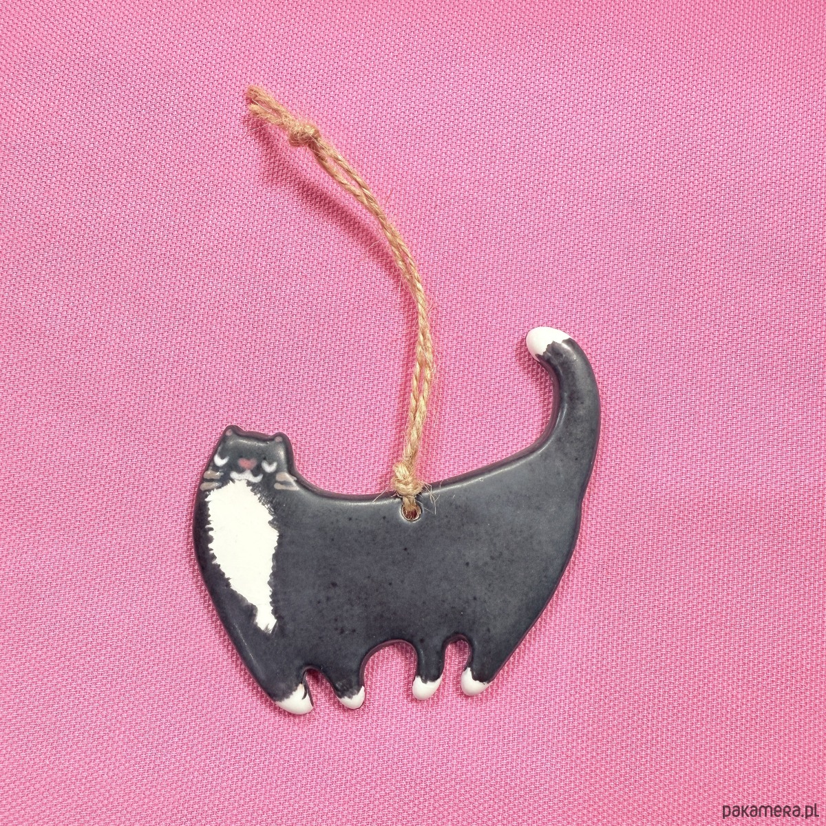 Ceramiczna ozdoba na choinkę w kształcie kotka wykonana własnoręcznie - jedyna w swoim rodzaju.