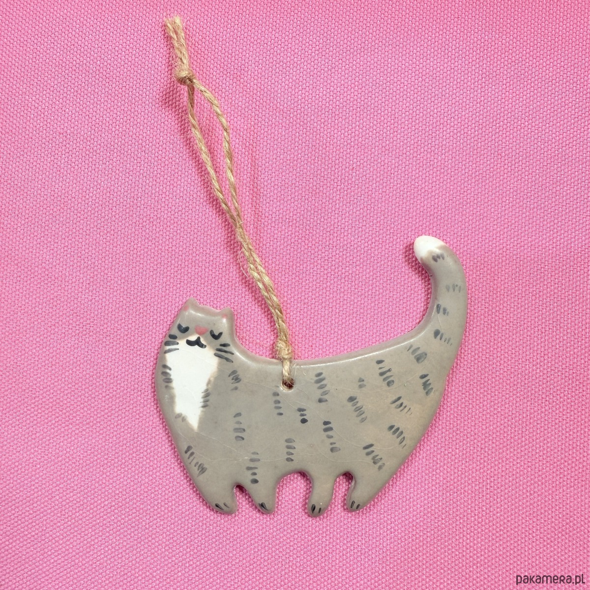 Ceramiczna ozdoba na choinkę w kształcie kotka wykonana własnoręcznie - jedyna w swoim rodzaju.
