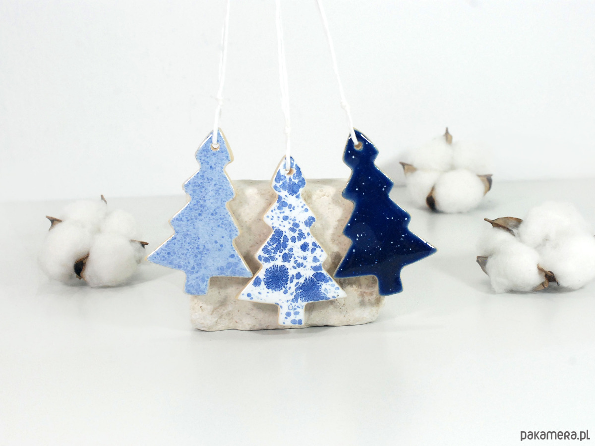 Komplet zawiera trzy ceramiczne ozdoby - choinki.