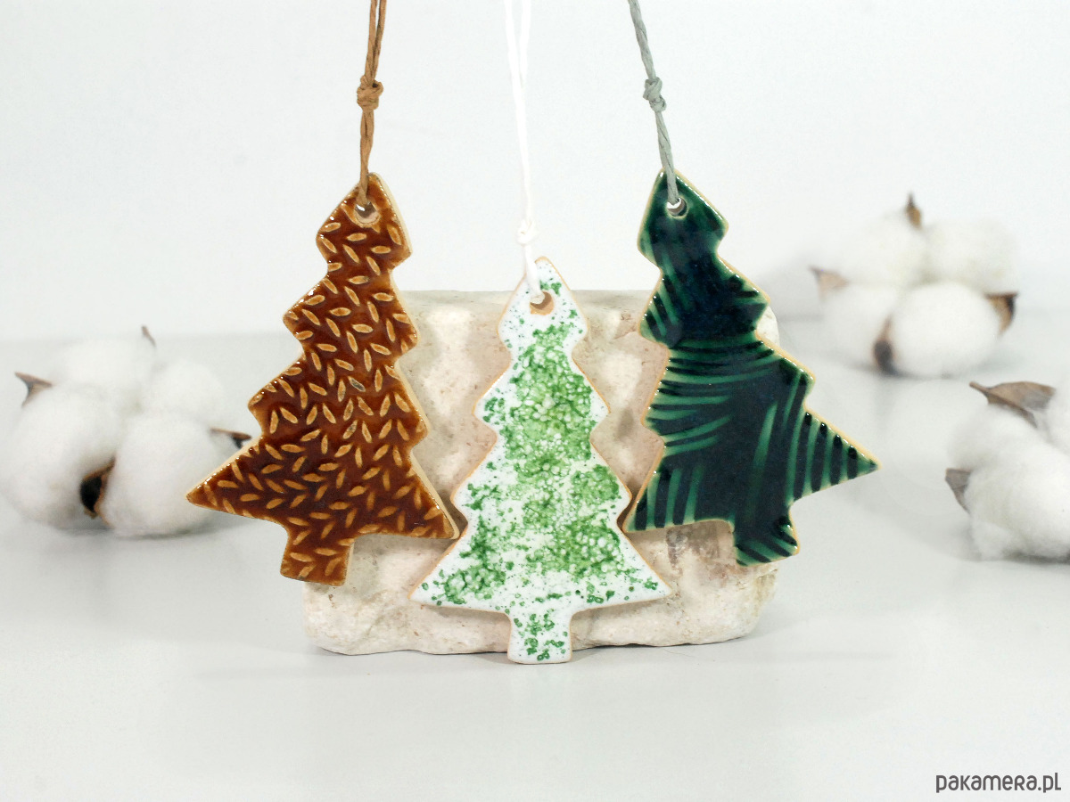 Komplet zawiera trzy ceramiczne ozdoby - choinki.