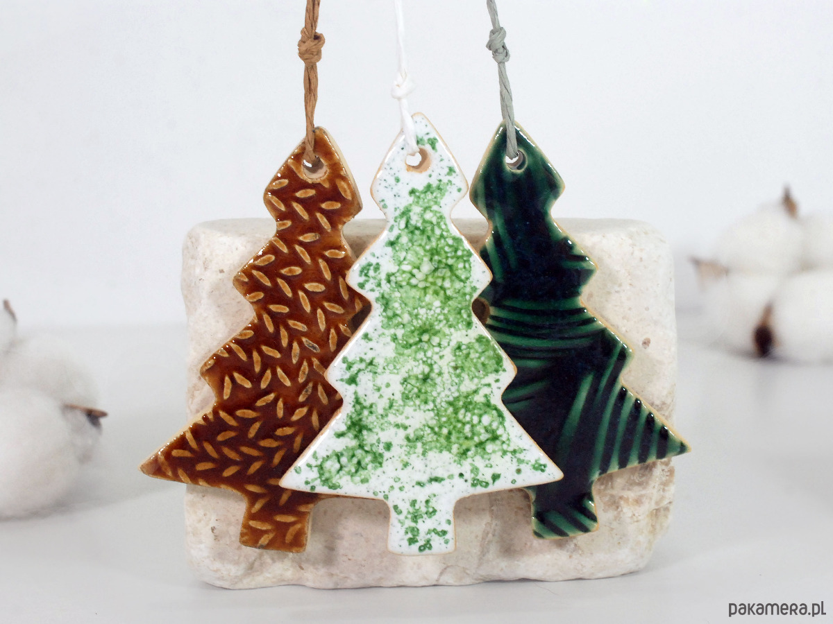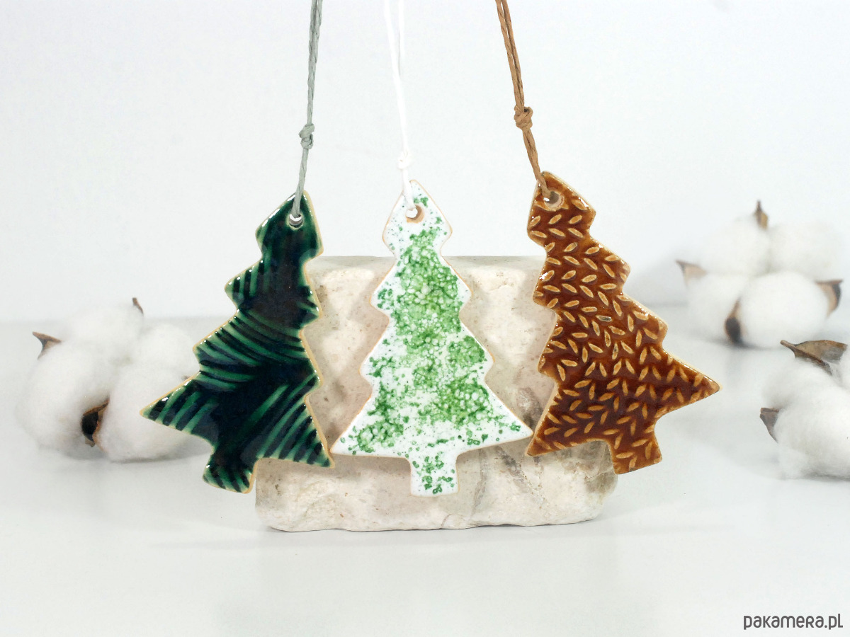 Komplet zawiera trzy ceramiczne ozdoby - choinki.