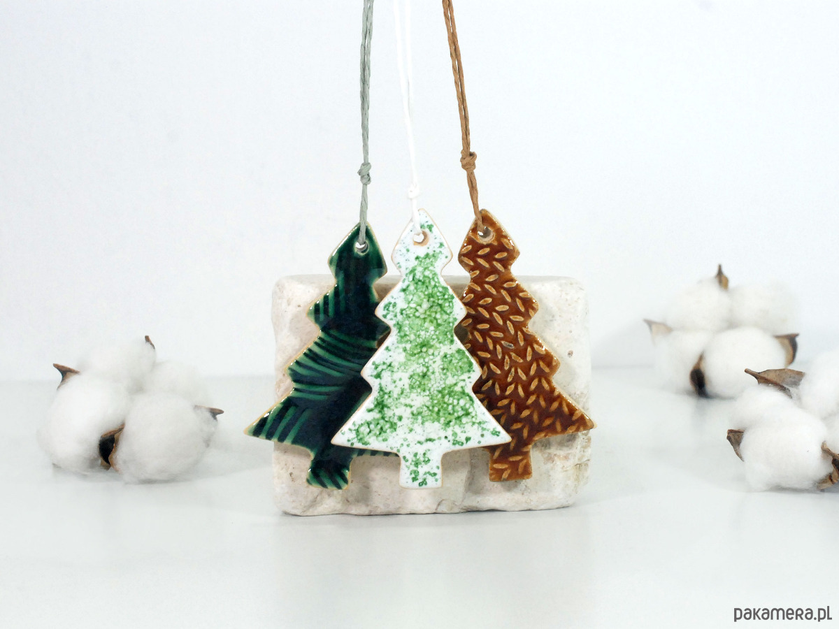 Ceramiczne choinki - komplet ozdób choinkowy