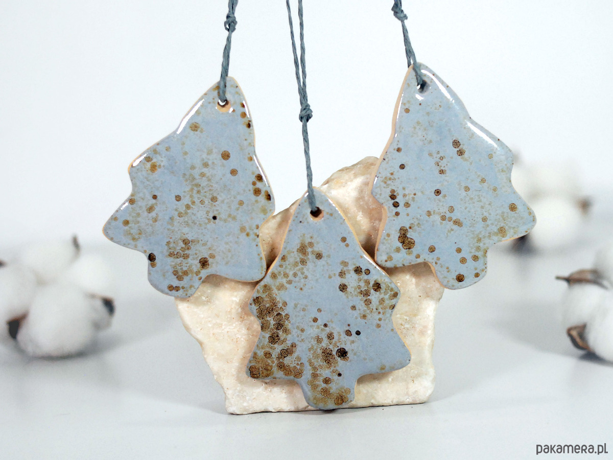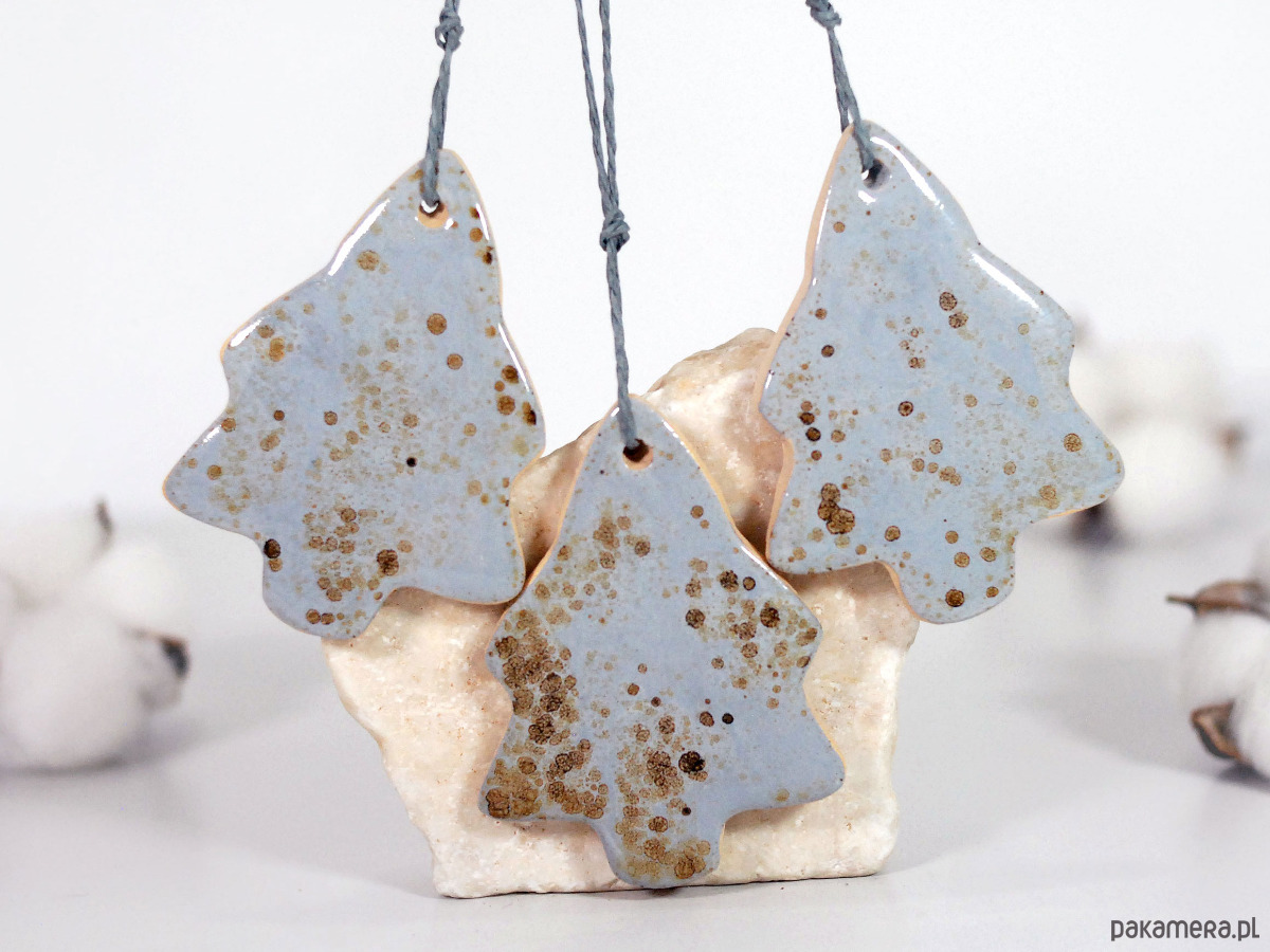 Ceramiczne choinki zestaw 3 ozdób choinkowych